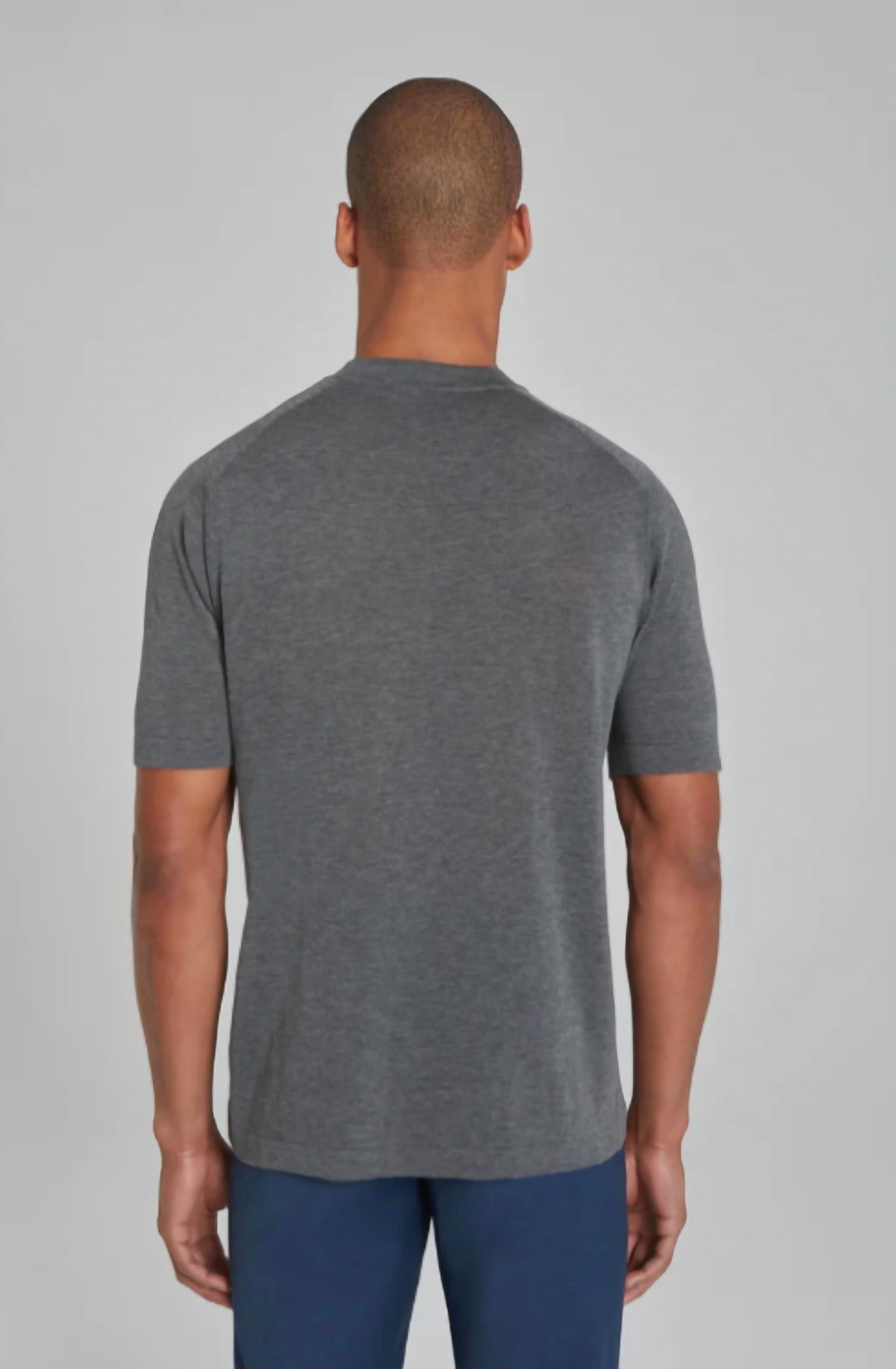 In our search for only the highest-quality materials for our collection, we fell in love with SetiCo. Made in Italy with a custom blend of GOTS Certified Organic Cotton and Mulberry Silk, we’ve utilized it here in a lightweight and breathable fully fashioned knit t-shirt. Featuring a saddle seam shoulder detail, straight hem, and a “high crew” neckline perfect for layering under a blazer, this wardrobe staple is a touch more elevated than a standard cotton tee and is ready for anything. Wear yours with everything from suits to shorts. With its lightweight 18 gauge knit, you’ll remain stylish and comfortable even on the hottest days as the high-quality, long-lasting cotton performs in all temperatures, and the addition of silk helps to achieve a super soft hand feel and lustrous color. In addition, Mulberry silk is one of the highest quality silks available, as the yarns are smoother, stronger, and uniformly colored, while also being anti-bacterial and UV resistant. Details: Short sleeve crew neck “High crew” neck collar Saddle seam shoulder detail Fully-fashioned knit seams 70% Cotton / 30% Silk Contemporary fit Made in Italy Machine wash cold on delicate cycle Do not bleach Do not tumble dry Lay flat to dry Warm iron inside out if needed Can be dry cleaned
