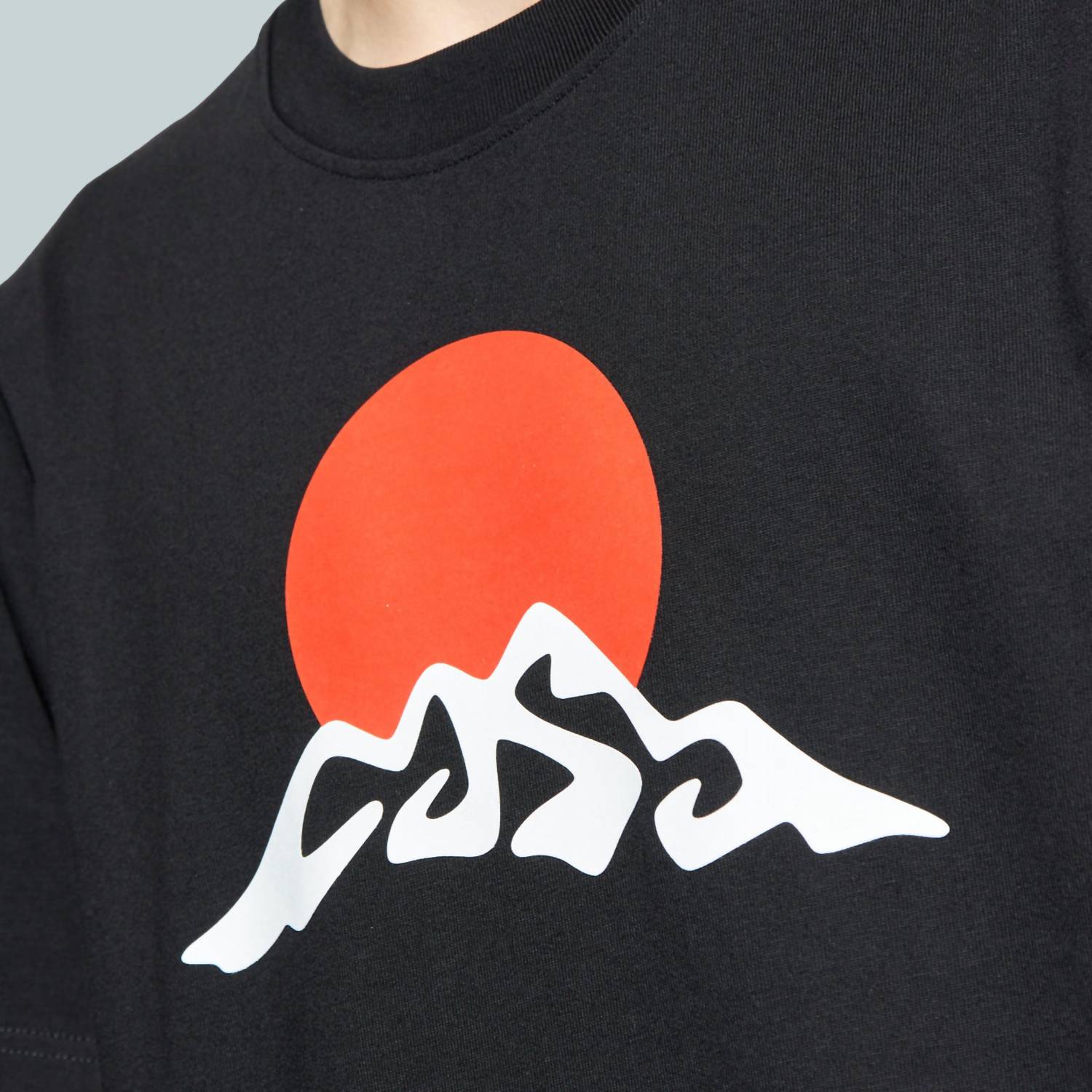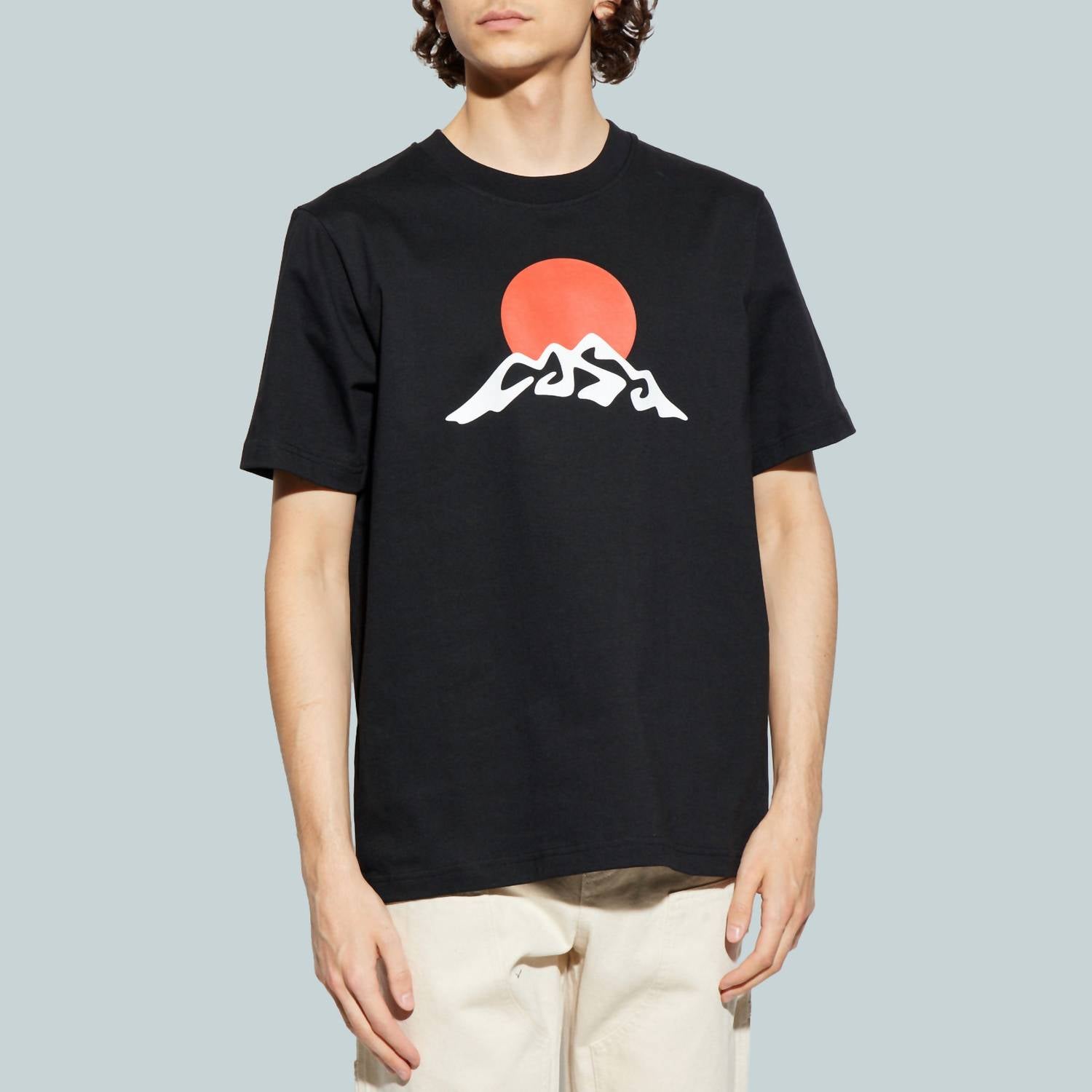 Elevate your vacation wardrobe with the Casablanca Montagne White Snow Printed T-shirt, a stylish choice for the streetwear trend. Crafted from 100% organic cotton, this short-sleeve tee offers a pull-on closure and features a graphic print in a classic black hue. Designed for men with a crewneck and no pockets, it embodies a relaxed yet trendy look perfect for summer occasions. Care instructions include hand washing and laying flat to dry for long-lasting wear.
