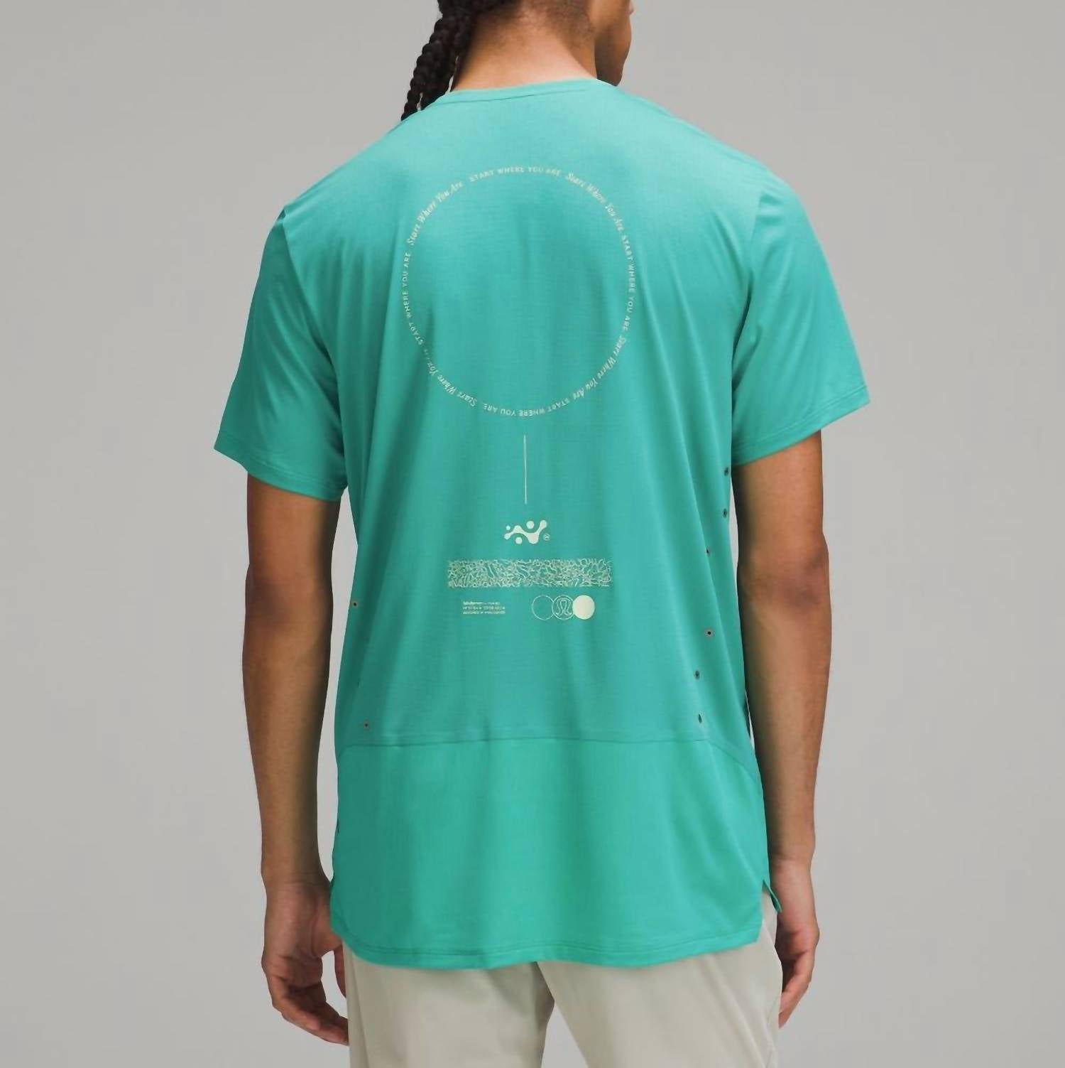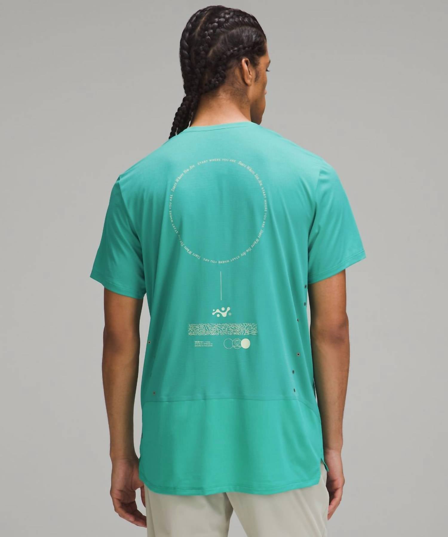 Introducing the Fast And Free Road To Trail Short Sleeve by lululemon, a perfect addition to your summer wardrobe. This blue graphic tee features a classic crewneck and short sleeves, ideal for vacation and streetwear trends. Crafted from high-quality polyester, it offers a lightweight and breathable experience. Designed for easy care, simply machine wash and tumble dry, with a convenient pull-on closure.