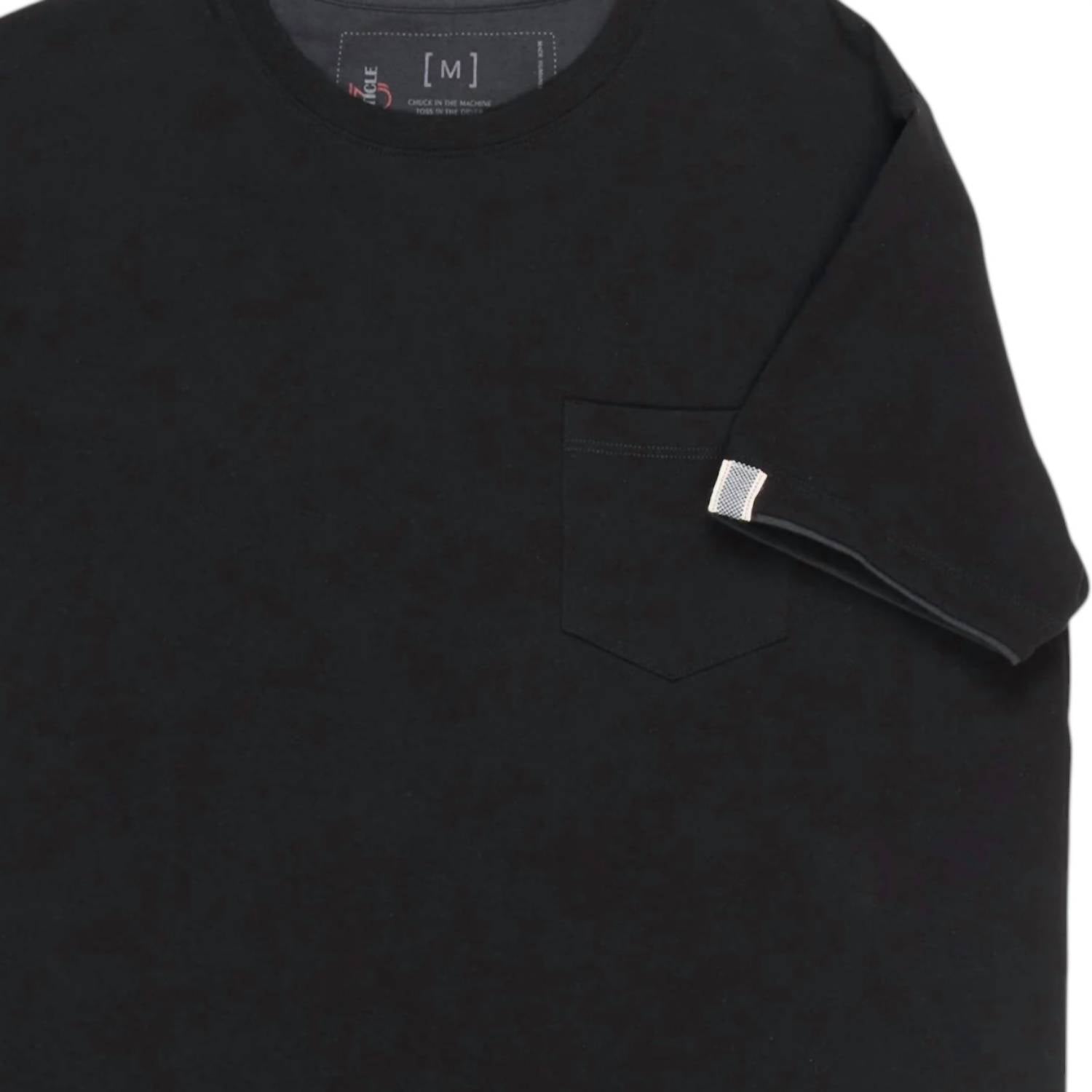 Discover effortless style with the Men's Short Sleeve Pocket Tee by Articl3, a tribute to Steve McQueen and designed for those easy days and chilled nights. This black tee offers a classic crewneck and solid pattern, crafted from 98% Peruvian blended cotton and 2% Lycra for a heavenly soft touch. The pull-on style provides a comfortable fit ideal for spring vacations and streetwear trends. Care instructions are not specified.