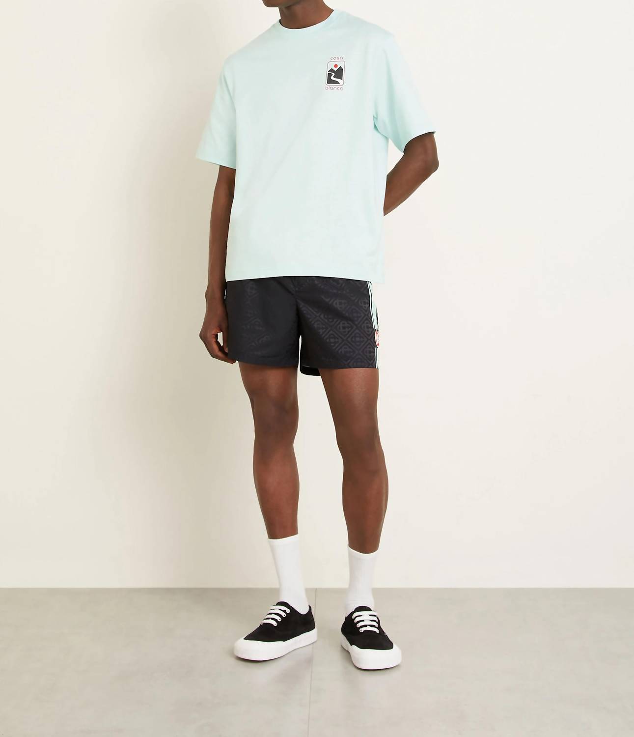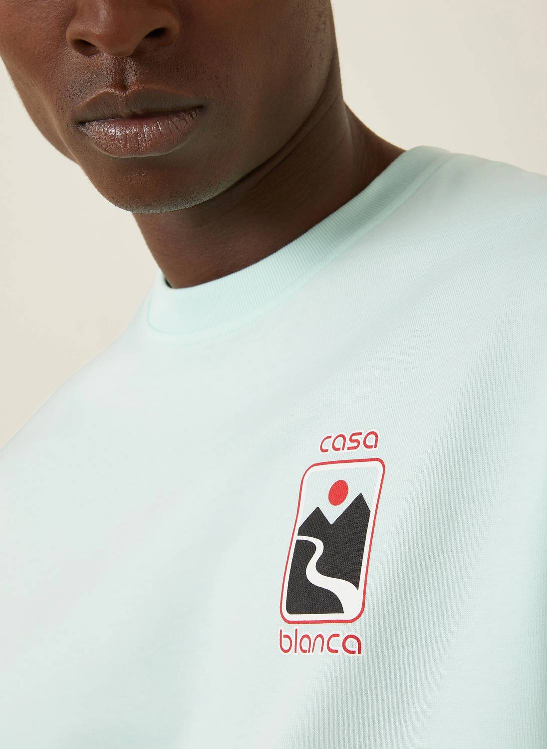 Introducing the Sunset Valley T-shirt by Casablanca, a perfect blend of comfort and style for the modern man. This mint-colored tee features a graphic pattern and short sleeves, crafted entirely from 100% cotton for ultimate comfort. Designed with a crewneck and a convenient pull-on closure, it embodies laid-back streetwear flair ideal for vacation getaways. Care is simple: machine wash and line dry to maintain its vibrant look.