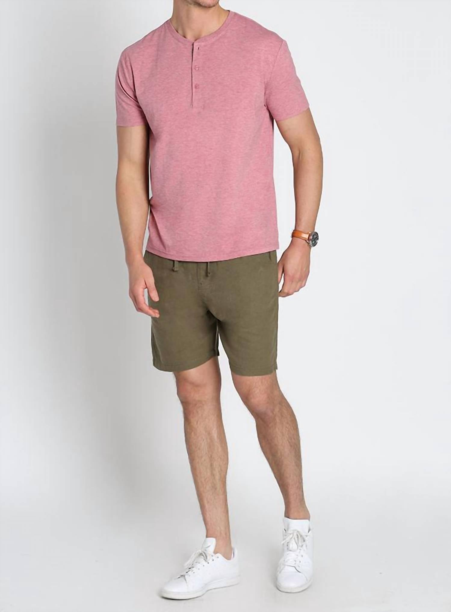 Introducing the Stretch Poly Viscose Short Sleeve Henley Tee by JACHS NEW YORK, crafted in a striking hue for a summery, streetwear aesthetic. This Men's tee features classic short sleeves and a button closure with a contrasting placket and neckline for added style. Composition: 59% Polyester, 35% Viscose, 6% Spandex. Origin: Imported.