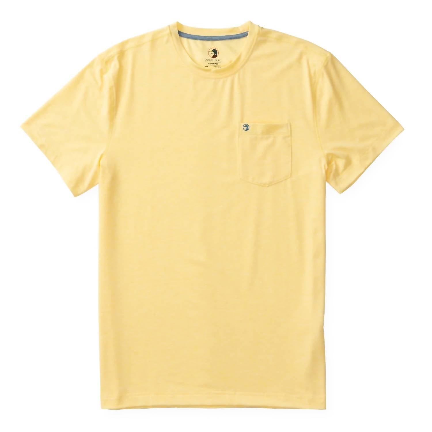 Experience everyday comfort and protection with the Windward Performance T-shirt by DUCK HEAD, crafted in a Yellow Heather hue. This men's short-sleeve tee is made of a 80% Polyester, 14% Cotton, and 6% Spandex blend, offering UPF 50+ protection and features permanent moisture-wicking and quick-dry capabilities, perfect for summer adventures. Pattern: Textured, Neckline: Crewneck. Origin: Imported. Care: Machine wash cold with like colors on a gentle cycle, do not add softener, and tumble dry low.