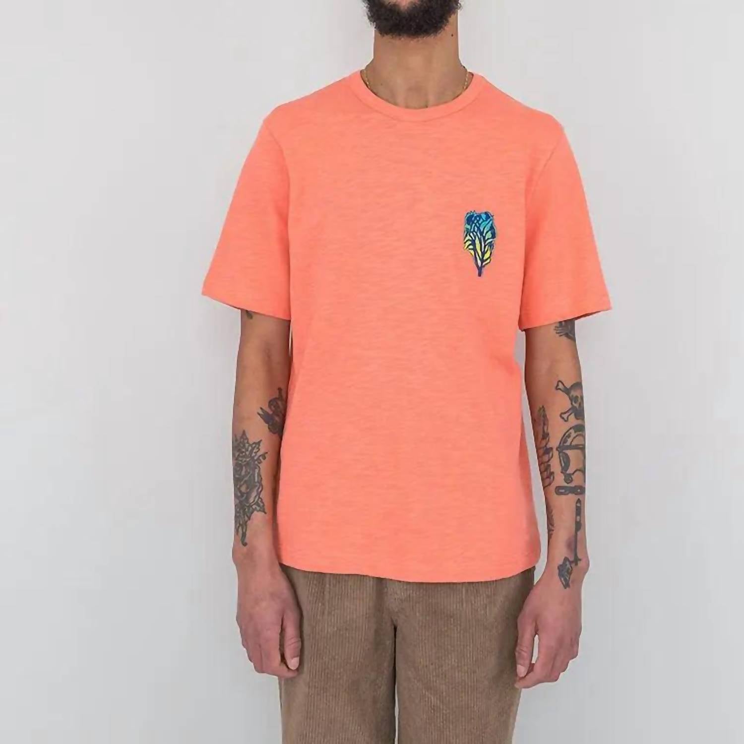 The Tom Hammick Slub Embroidered Tee by Folk is a unique streetwear piece perfect for a summer vacation. This men's short sleeve tee is crafted from heavy 100% cotton jersey, providing both comfort and durability. It features a pull-on closure and a crewneck design, with mixed print and embroidery inspired by Tom Hammick's 'Cloud Island' art. Made in Portugal, this solid pink tee offers both style and substance. Care instructions: Machine wash and tumble dry.
