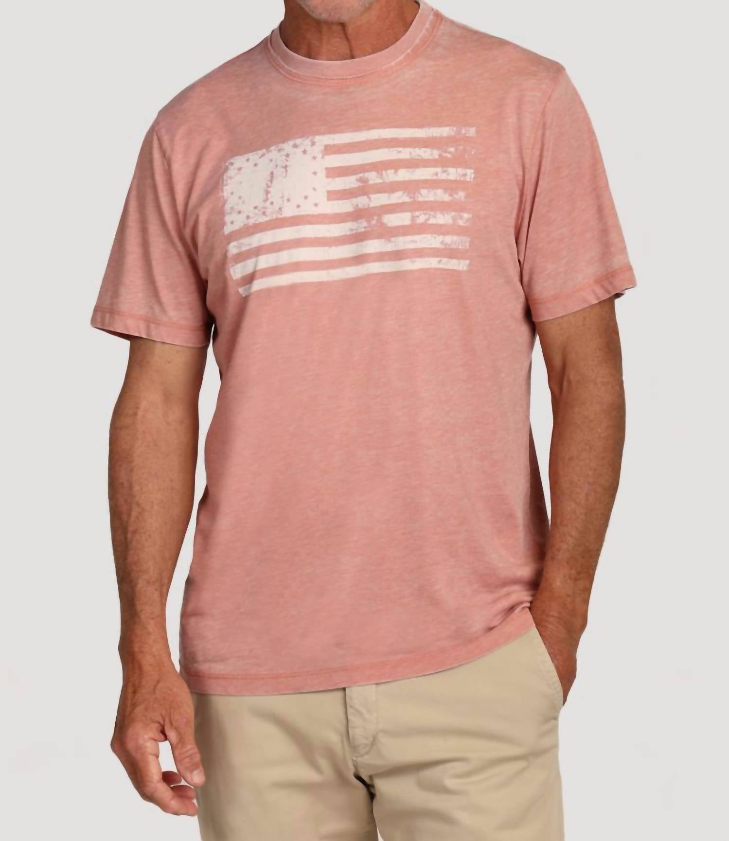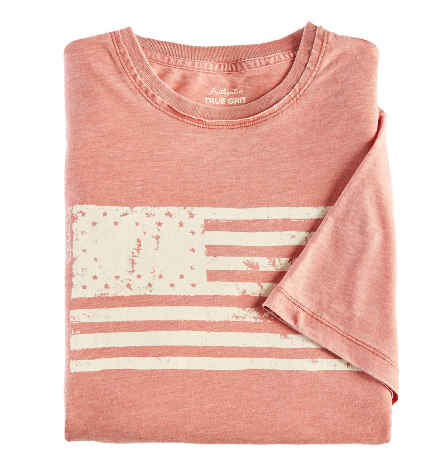 Embrace your American pride with the Flag Tee by TRUE GRIT, a vibrant papaya short sleeve tee perfect for summer celebrations. Made from durable polyester, this graphic tee features a classic crewneck design and a timeless patriotic screen print. Enjoy the convenience of a pull-on closure and hassle-free maintenance with machine wash and tumble dry compatibility. Ideal for streetwear style, this tee is the perfect addition to your 4th of July vacation wardrobe.