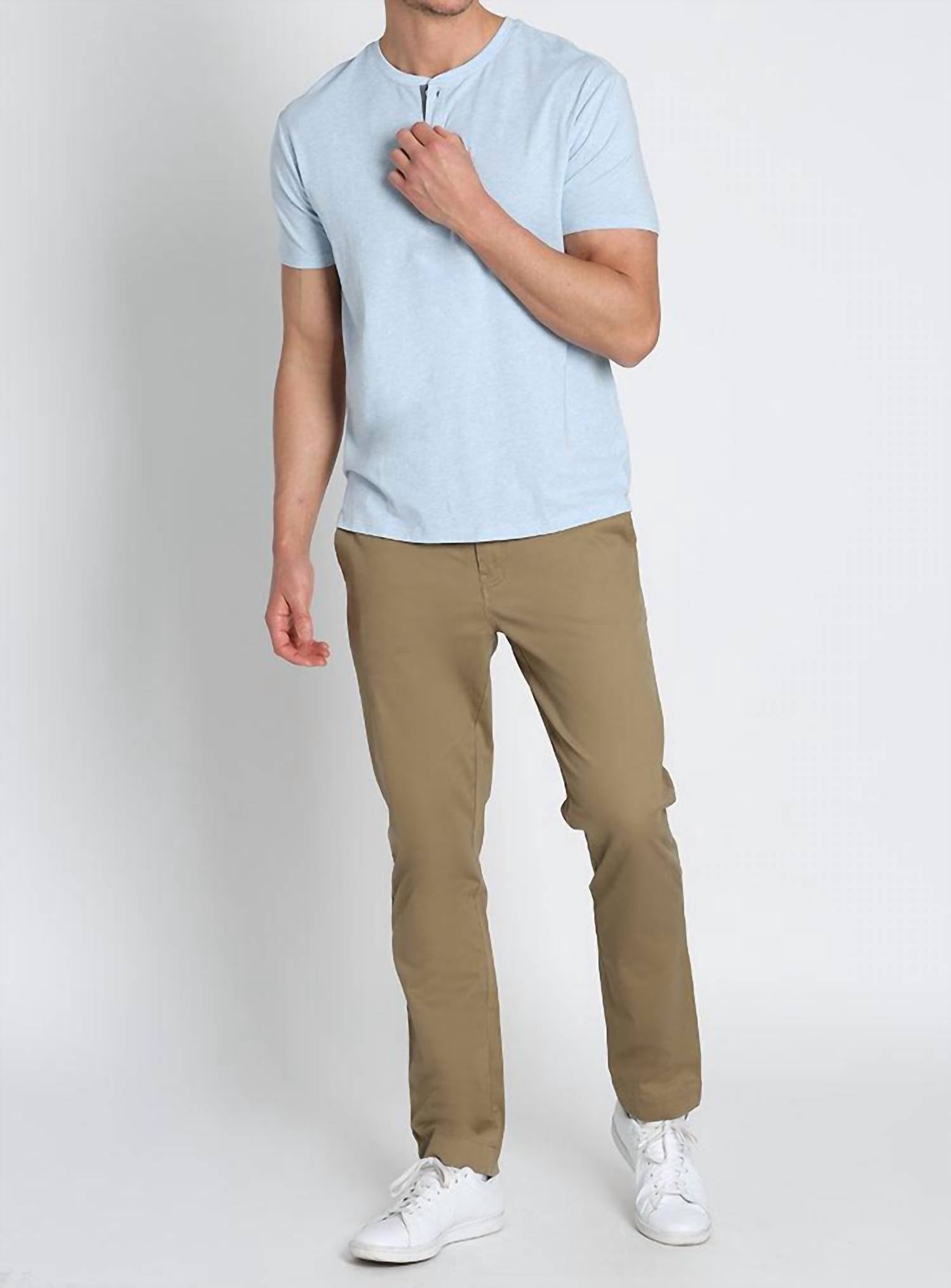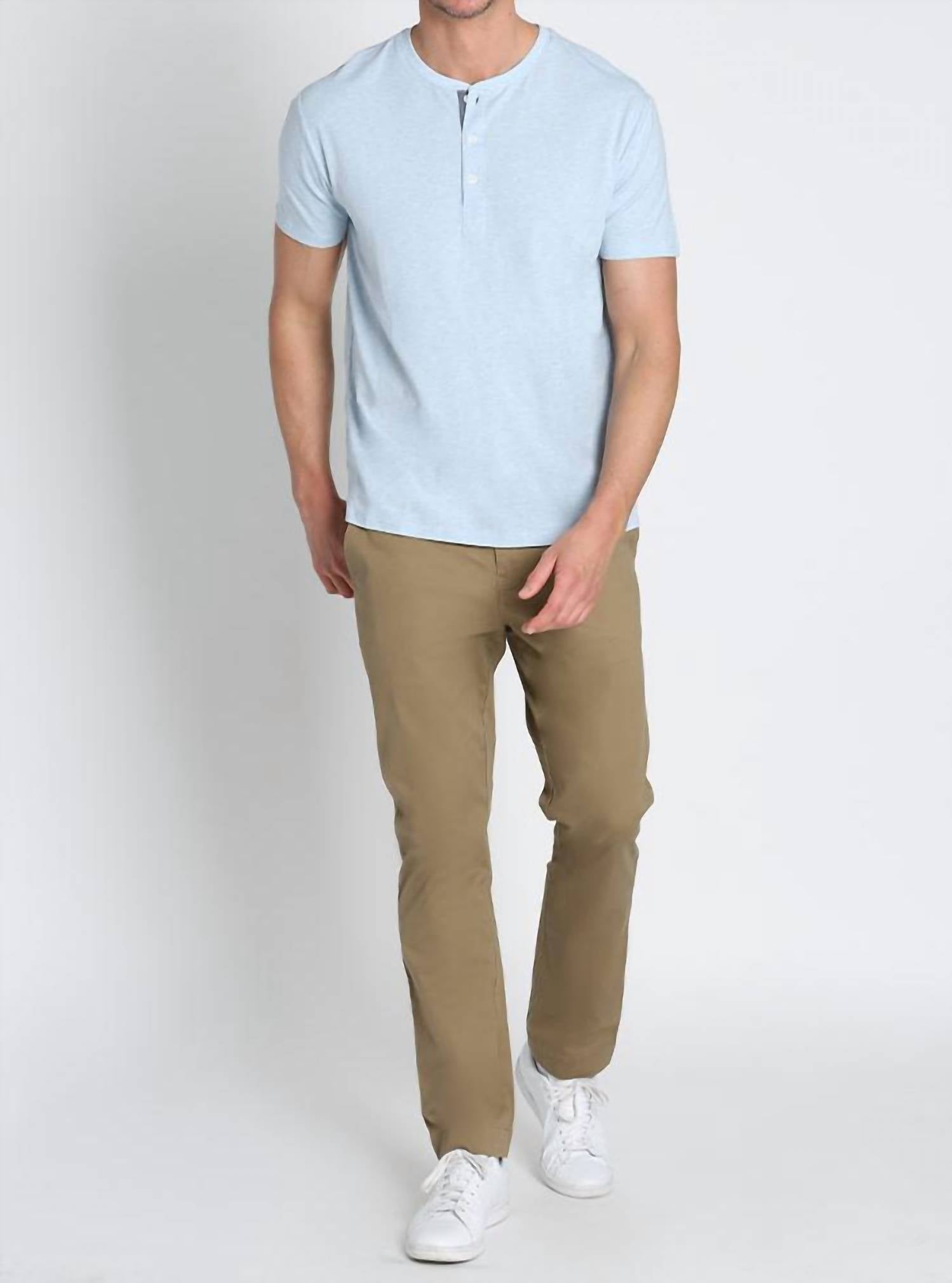 Discover the Stretch Pima Blend Short Sleeve Henley Tee by JACHS NEW YORK, crafted from a luxuriously soft pima cotton blend with added stretch for superior comfort. This classic fit tee features a crewneck design in a versatile shade, perfect for minimalist summer styling. Composition: 58% Pima Cotton, 38% Modal, 4% Spandex. Closure: Button closure. Imported for exceptional quality, this solid-patterned tee is an ideal choice for travel occasions.