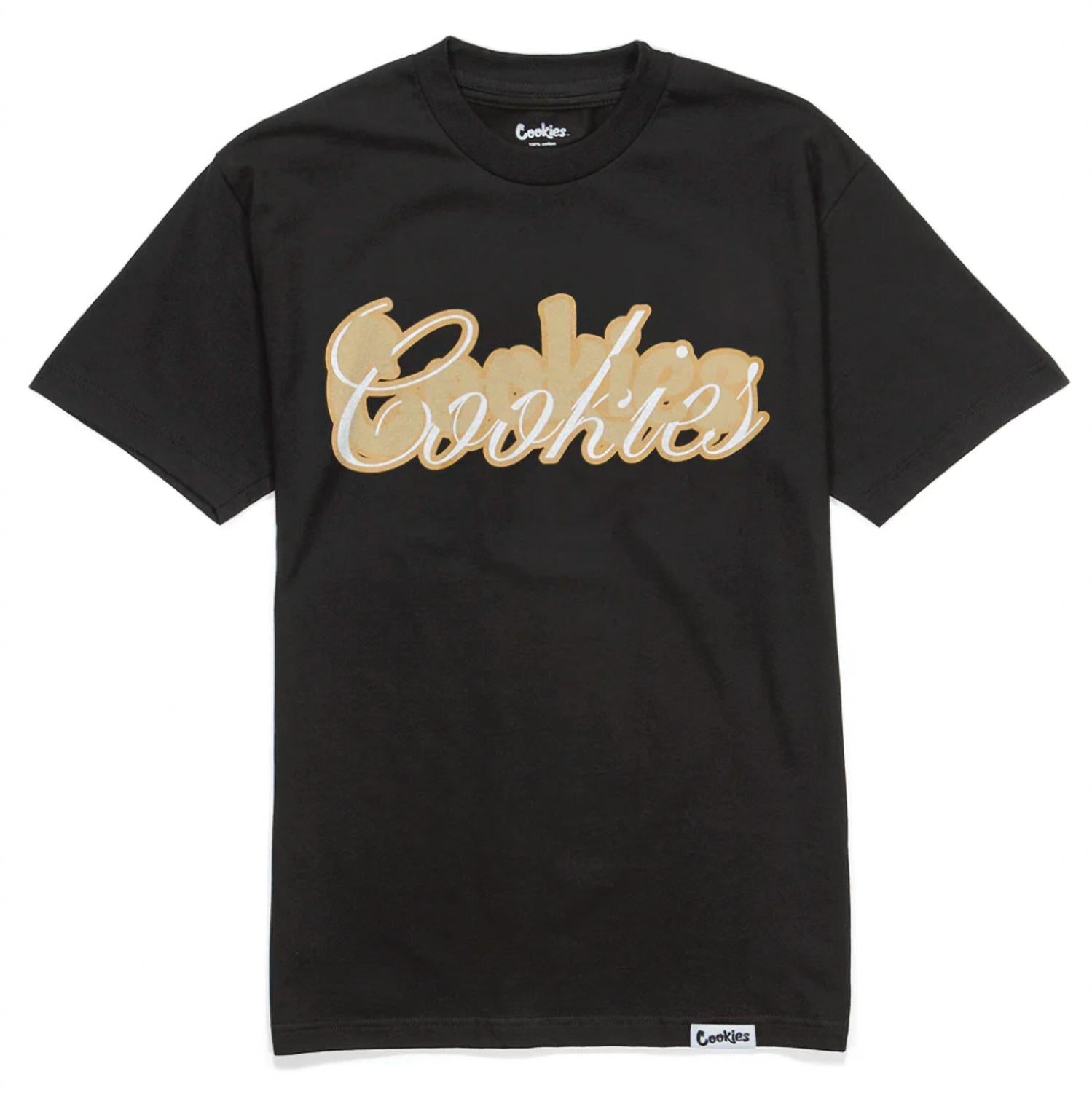 Introducing the Men's Costa Nostra Shirt by Cookies, a perfect blend of style and comfort in Black/Wheat. This streetwear tee features short sleeves and a set-in rib collar with shoulder-to-shoulder taping for added durability. Made from 100% cotton jersey and weighing 6.0 ounces, it is preshrunk to minimize shrinkage. Closure: Pull on. Ideal for a casual dinner party, this graphic shirt delivers effortless summer style.