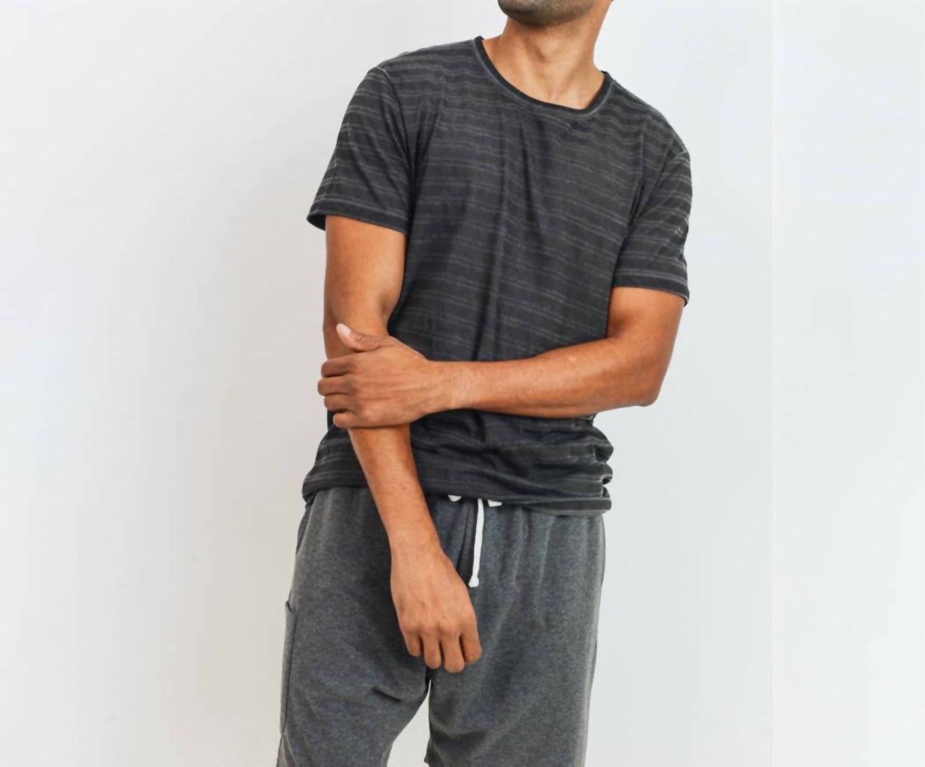 Meet the Mono B Crew Neck Striped Tee in a timeless black that blends style with comfort. Crafted from a soft cotton blend, this short-sleeve tee is designed for effortless everyday wear, featuring a classic crewneck and pull-on closure. This minimalist piece originates from CN and is the perfect travel companion for spring festivities, like Thanksgiving. For care, simply machine wash and tumble dry.