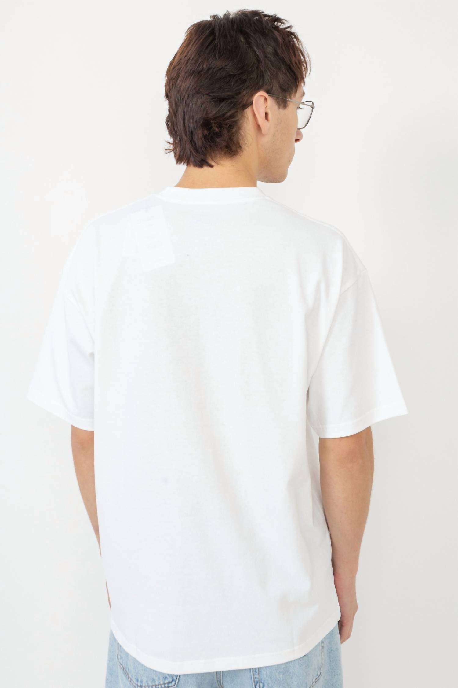 This white T-shirt is crafted from 100% cotton with a weight of 240 g/m², offering a durable yet soft feel. Made from pre-washed jersey fabric, it provides enhanced comfort and a slightly worn-in look. Featuring a striking front print showcasing artwork by Sirus F. Gahan, the T-shirt combines artistic expression with everyday wearability. Designed in a regular cut for a classic fit, it's both versatile and stylish. The model, standing at 184 cm tall, is wearing a size L. Product code: PSC-SU23-82.