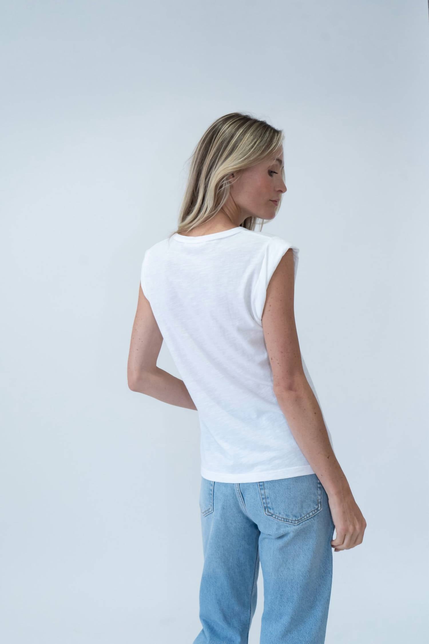 The Caroline Twist Tee by SIX/FIFTY is a minimalist staple perfect for any holiday party. Crafted from soft cotton, this solid white tee features cap sleeves and a mockneck design. Its pull-on closure makes it easy to wear, while the twist detail adds a touch of modern flair. Care instructions include hand washing and line drying to maintain its quality.