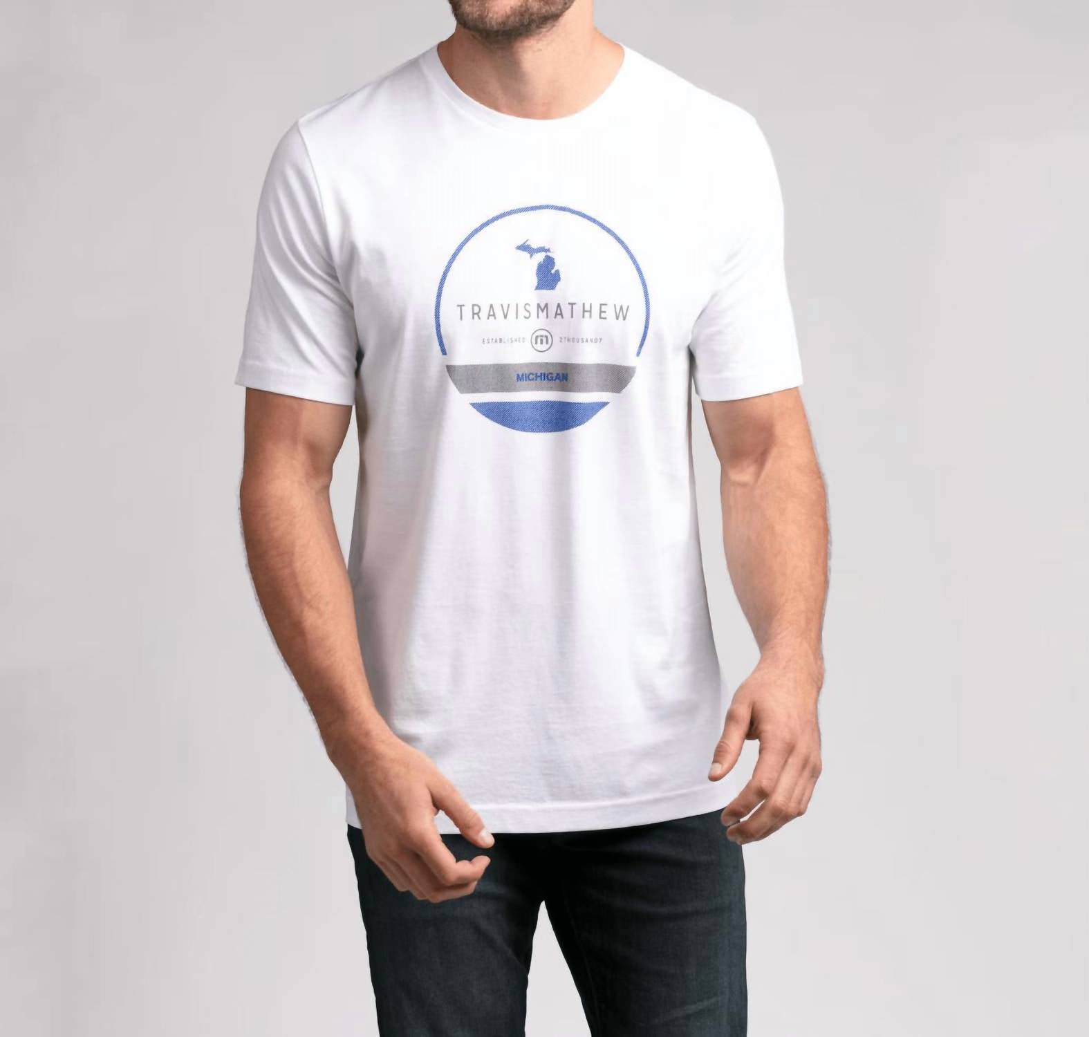 Streetwear staple designed with a nod to Michigan. Short-sleeve t-shirt showcases a graphic design of the state's silhouette, perfect for travel or casual outings. Crafted from 100% cotton. Offers comfort and style in one package. With a convenient pull-on closure. Simply machine wash to maintain its fresh look.