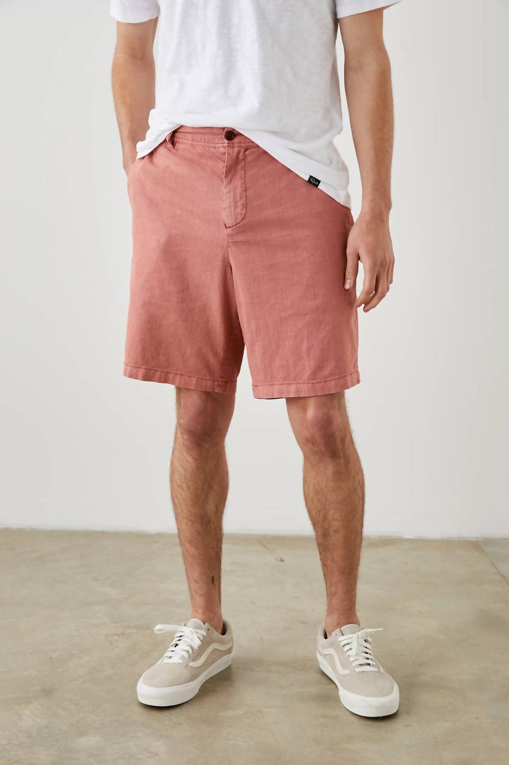 Stay stylishly comfortable with the Rails Boden Short, perfect for any summer outing. Crafted from a linen blend, these red flat front shorts feature a knee-length hem and are designed with practicality in mind, including side and back pockets. The solid pattern provides a minimalist look that pairs effortlessly with any top. Closure: Button closure. Care: Machine wash. Ideal for a vacation or a casual 4th of July celebration.