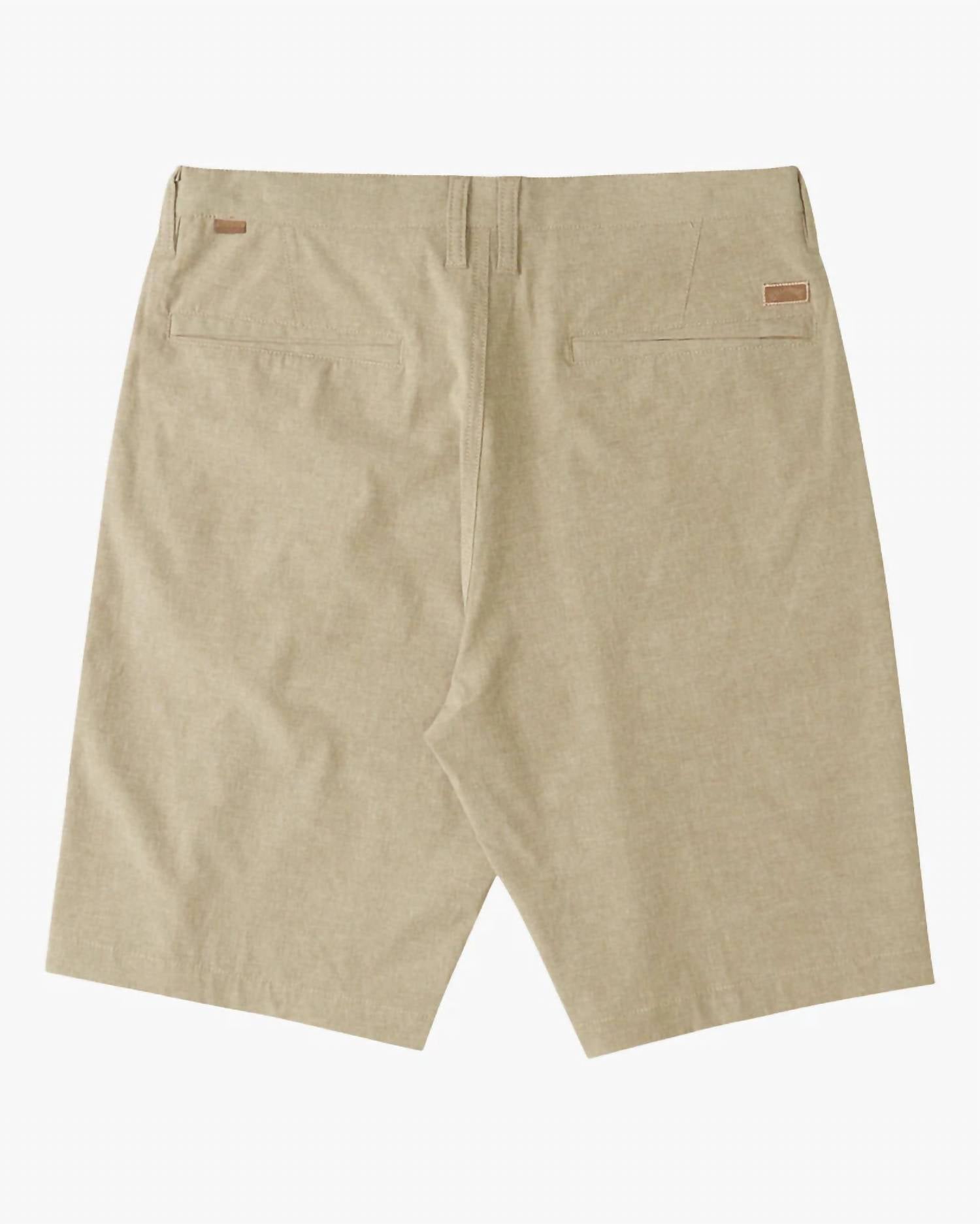 Introducing the Billabong Men's Crossfire Short Boys, designed to seamlessly blend elevated style with adventure-ready functionality. These 18" shorts in a minimalist khaki colorway feature a classic chino design with Micro Repel waterproofing for a faster drying time. Crafted from a blend of recycled poly and organic cotton with 4-way stretch, they include a button closure and three pockets for added convenience. Care: Hand wash.