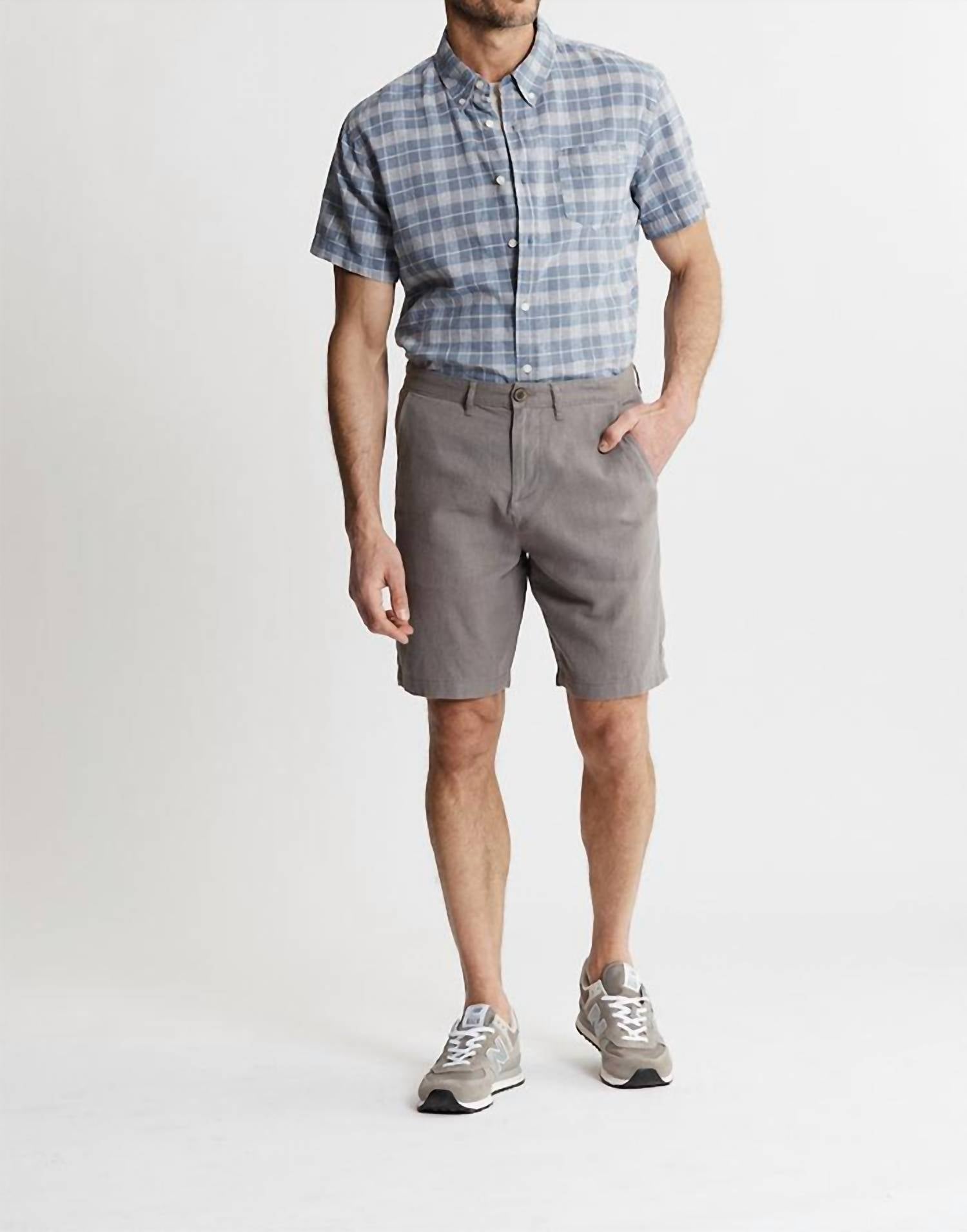 Introducing the Linen Blend Short by JACHS NEW YORK, designed in a sophisticated hue for effortless style. This men's classic fit short features a 9-inch inseam, 2 front pockets, and 2 back pockets for practical storage, with a button closure for a secure fit. Made from a blend of 55% linen and 45% viscose, these shorts provide a soft and breathable feel, making them ideal for summer occasions like vacations or the 4th of July. Proudly imported, these preppy shorts balance casual comfort with refined style.