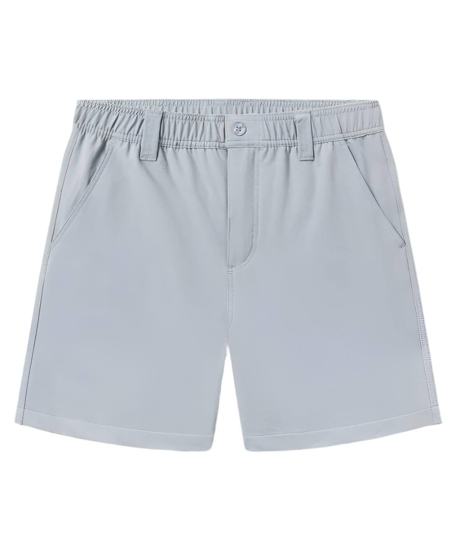 Upgrade your summer wardrobe with the Nomad Short by Southern Shirt Company, designed for travel and casual outings in sleek Metal. These men's shorts feature a practical 6” inseam crafted from a double weave fabric composed of 88% polyester and 12% spandex. It includes a 4-way stretch and a DWR finish for comfort and performance, with side and back pockets adding convenience. The pull-on design is packable, wrinkle-resistant, and machine washable on a cold gentle cycle, with low tumble dry care instructions. The model, who stands 6’3”, wears a medium size.
