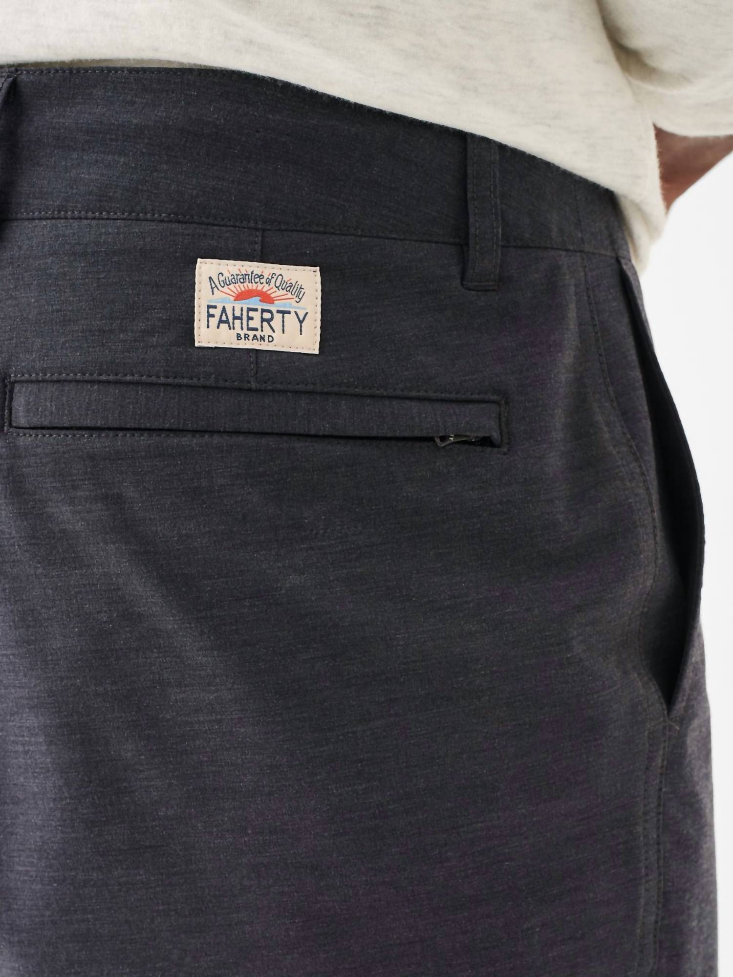 Upgrade your summer wardrobe with the Faherty Belt Loop All Day Shorts in a crisp Ice Grey shade. With a relaxed fit, these shorts feature a 7" inseam, straight leg, and are designed to sit below the natural waist for superior comfort. The eco-friendly fabric comprises 75% Recycled Polyester, 17% Cotton, and 8% Spandex, offering a soft, natural feel with durable belt loops and a drawcord at the interior waistband for a custom fit. Closure: Zip fly. Care: Machine wash cold, tumble dry low. Crafted for functionality, they include mesh-lined pockets, a hidden zip pocket, and are imported for quality you can rely on.