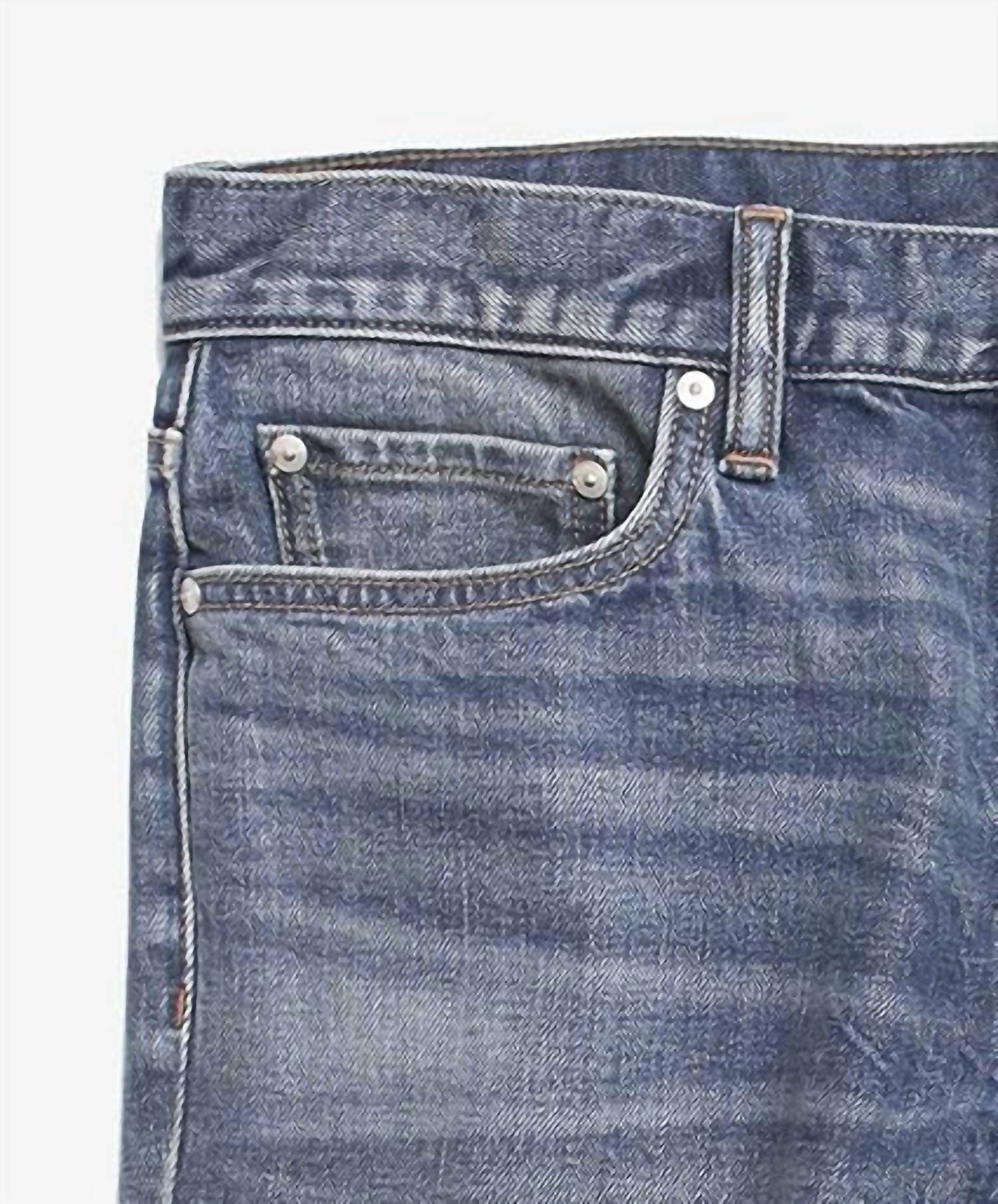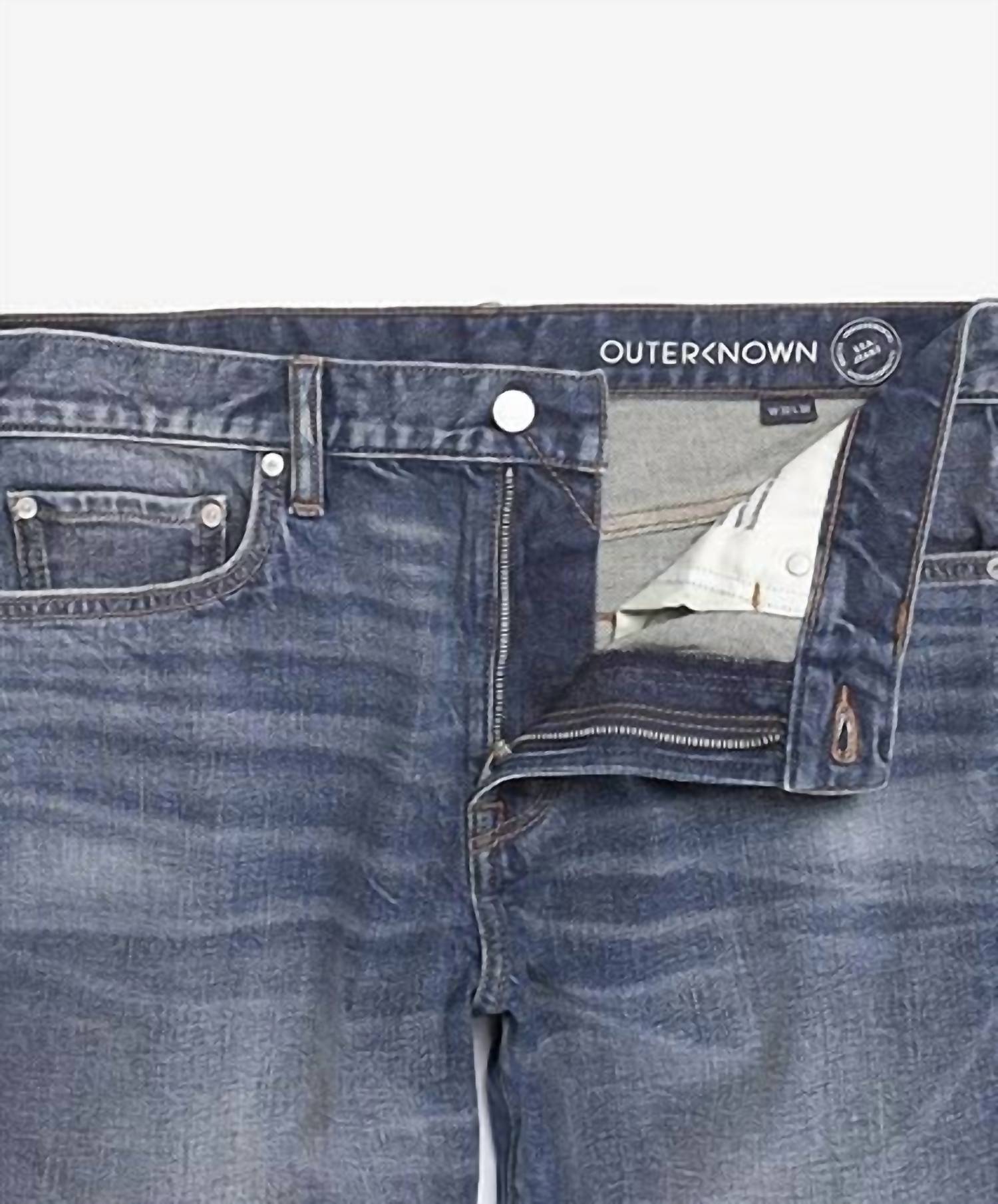 Introducing the Ambassador Slim Fit Jean by Outerknown, a perfect blend of comfort and style in Worn Indigo. Made from a sustainable fabric mix of 95% organic cotton, 4% recycled poly, and 1% lyocell, this medium wash jean offers all-day wearability with its mid-weight 12 oz denim and sleek zip closure. Designed with a mid-rise waist and straight leg for a modern, streamlined look, it's completed with practical pockets and dull nickel hardware. Care for these jeans by machine washing cold, then line drying in the shade, guaranteeing they remain a staple in your wardrobe through any season. Model is 6'0" and 175 pounds, wearing a size 32 with a 32" inseam and 14" leg opening.