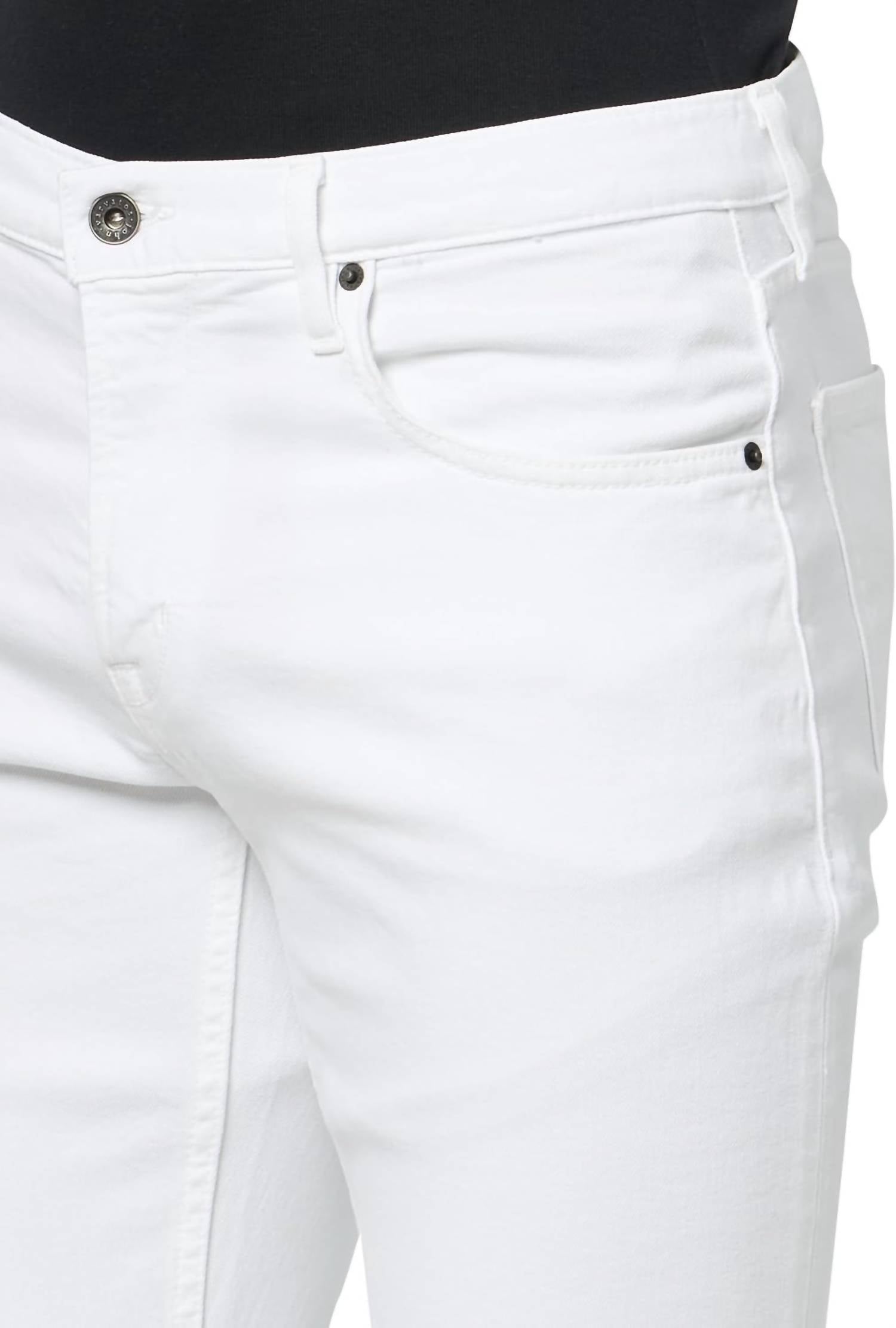 Introducing the J702 Slim Fit Denim Jeans by John Varvatos, crafted for men in a solid white color. With a mid-rise waist and zip closure, these jeans present a classic yet rebellious look thanks to artisanal tinting and hand-sanding details. Made from a 99% cotton and 1% elastane blend, it offers a comfortable and stretchy slim fit with skinny leg styling. Care instructions recommend a machine wash cold to maintain their vintage appeal, making them a perfect staple for spring travel. Inseam: 32 inch.