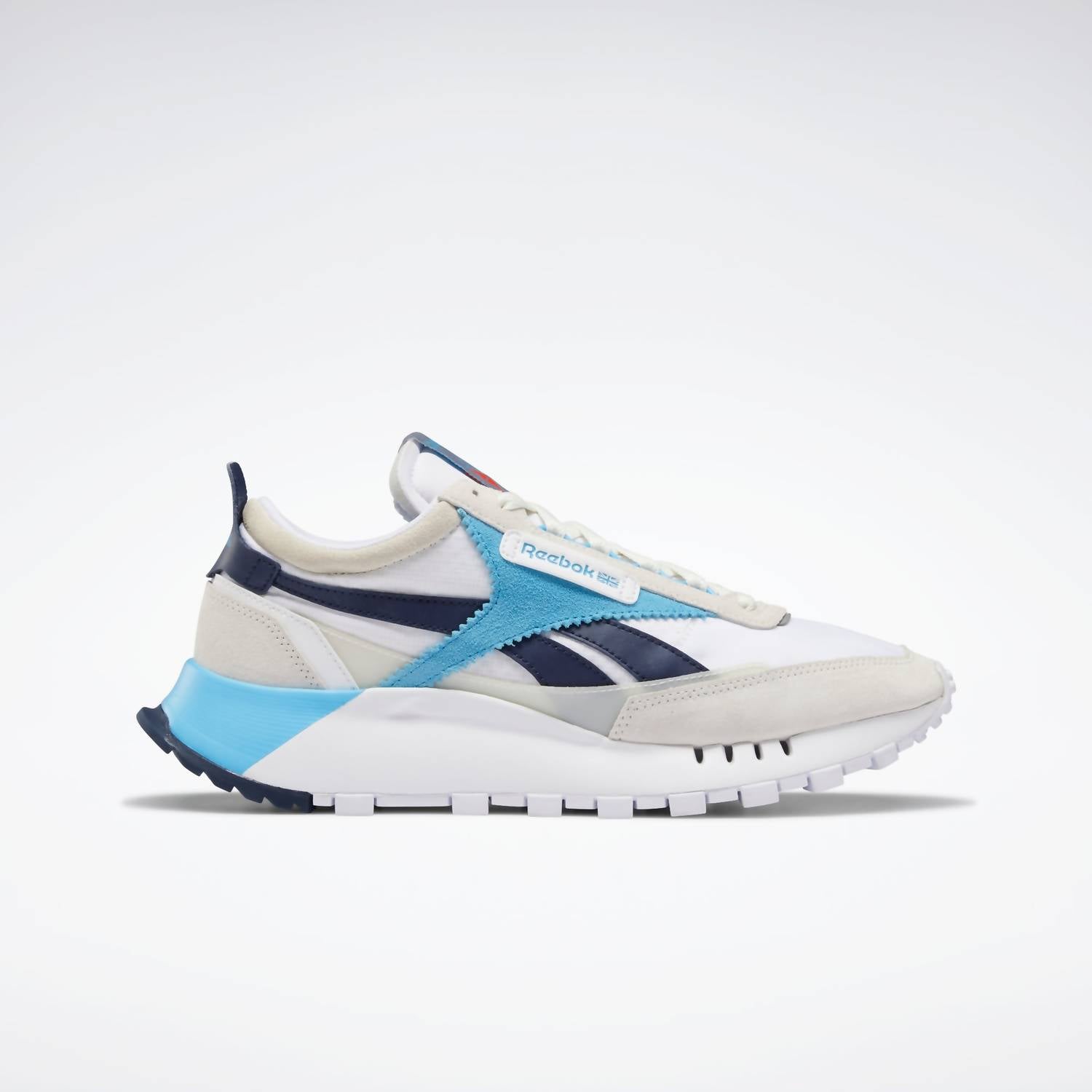Unleash your game-day style with the Men's Classic Leather Legacy Shoes by Reebok, offering a perfect combination of comfort and durability. Crafted from premium leather with a medium shoe width, they feature a low-top design with abrasion-resistant cushioning for superior support. These white and vector navy athletic shoes showcase a round toe and flat heel under 1 inch, providing a stable base for your athleisure adventures. Closure: Lace-up. Ideal for the spring season.