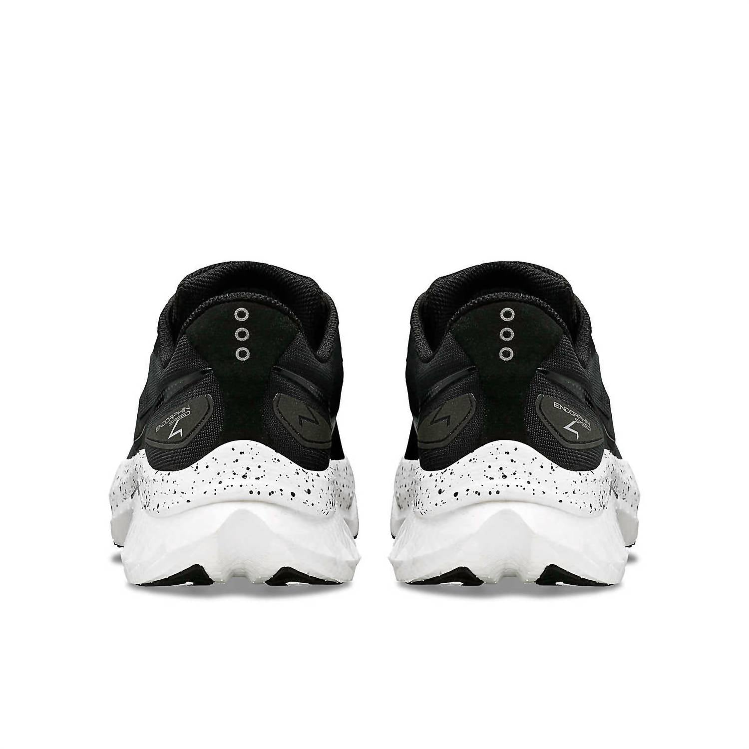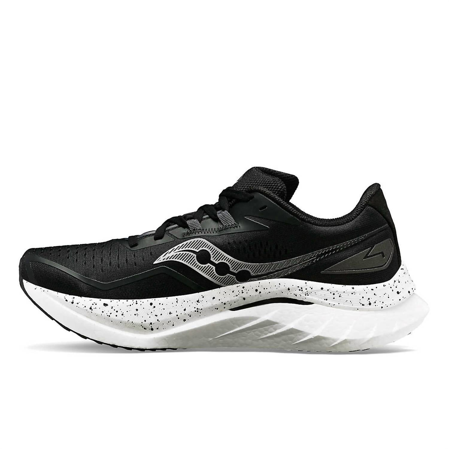 Meet the Men's Endorphin Speed 4 Sneakers by Saucony in sleek black, perfect for your fitness and workout sessions. These sneakers are designed with a revolutionary PWRRUN PB foam that delivers exceptional energy return and cushioning. Experience a snappy, propulsive feel with the winged nylon plate and a quick transition with SPEEDROLL technology. The updated zonal engineered mesh upper ensures breathability and a secure fit, while the XT-900 carbon rubber outsole provides optimal straight-line traction.