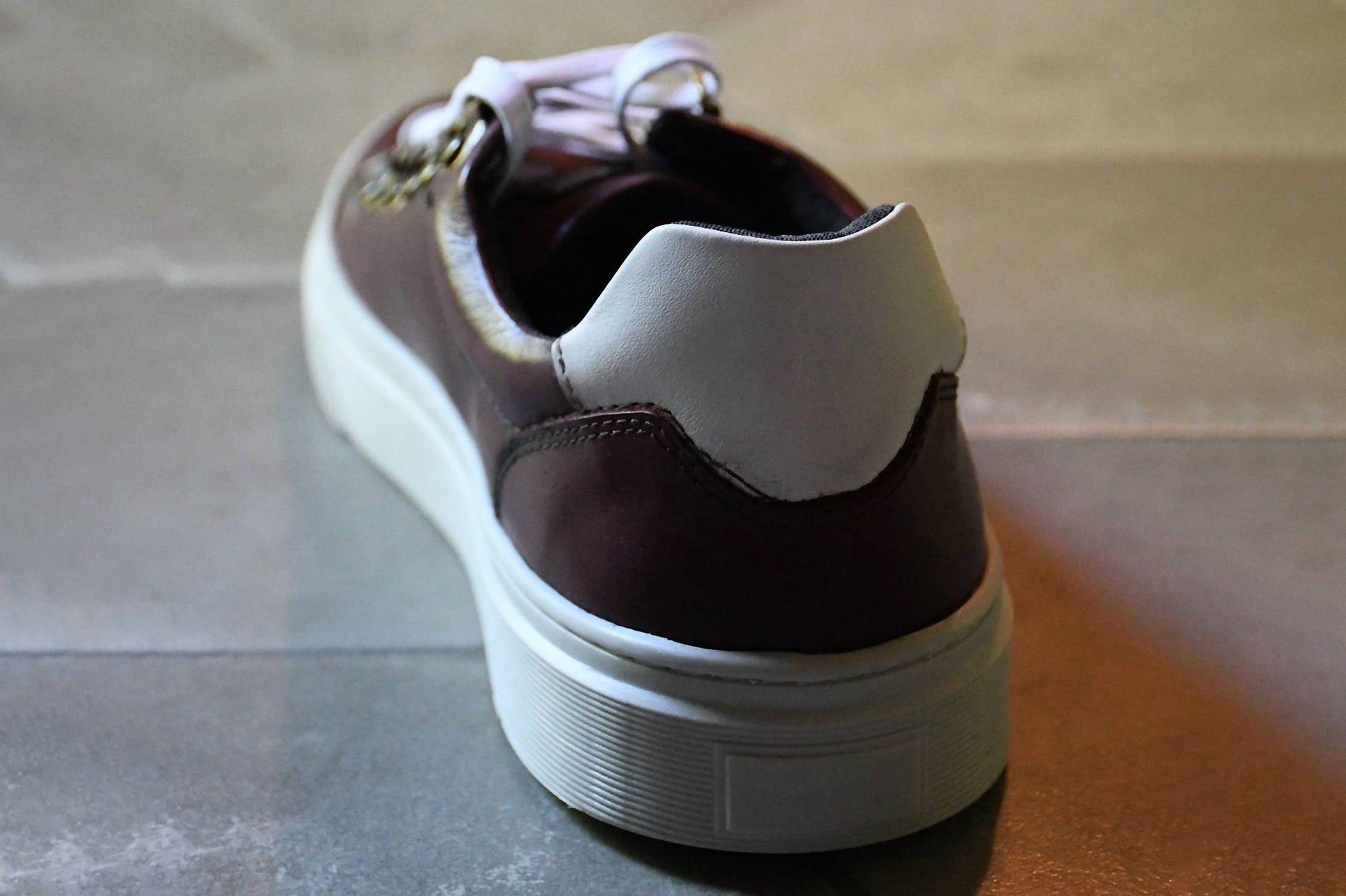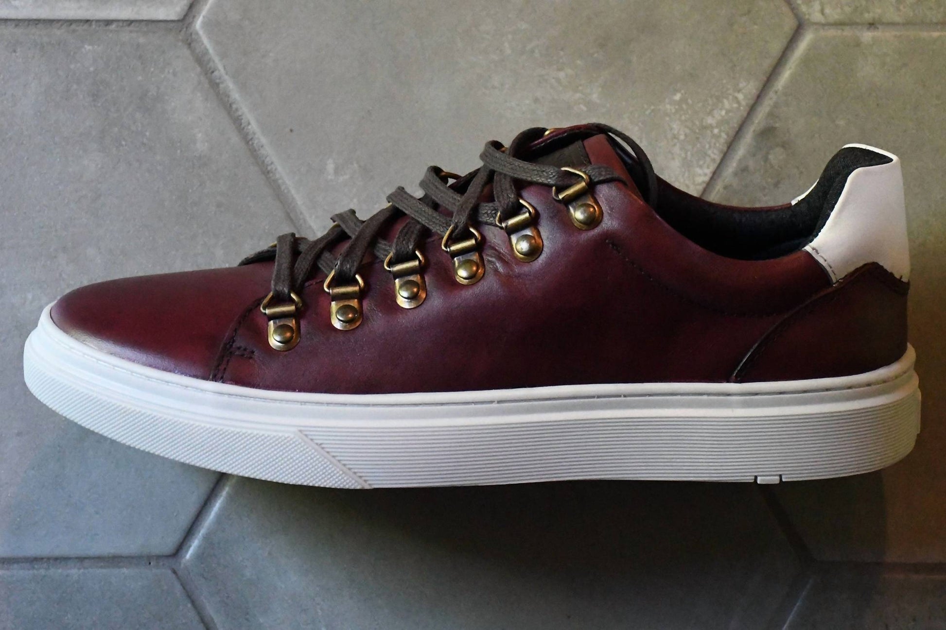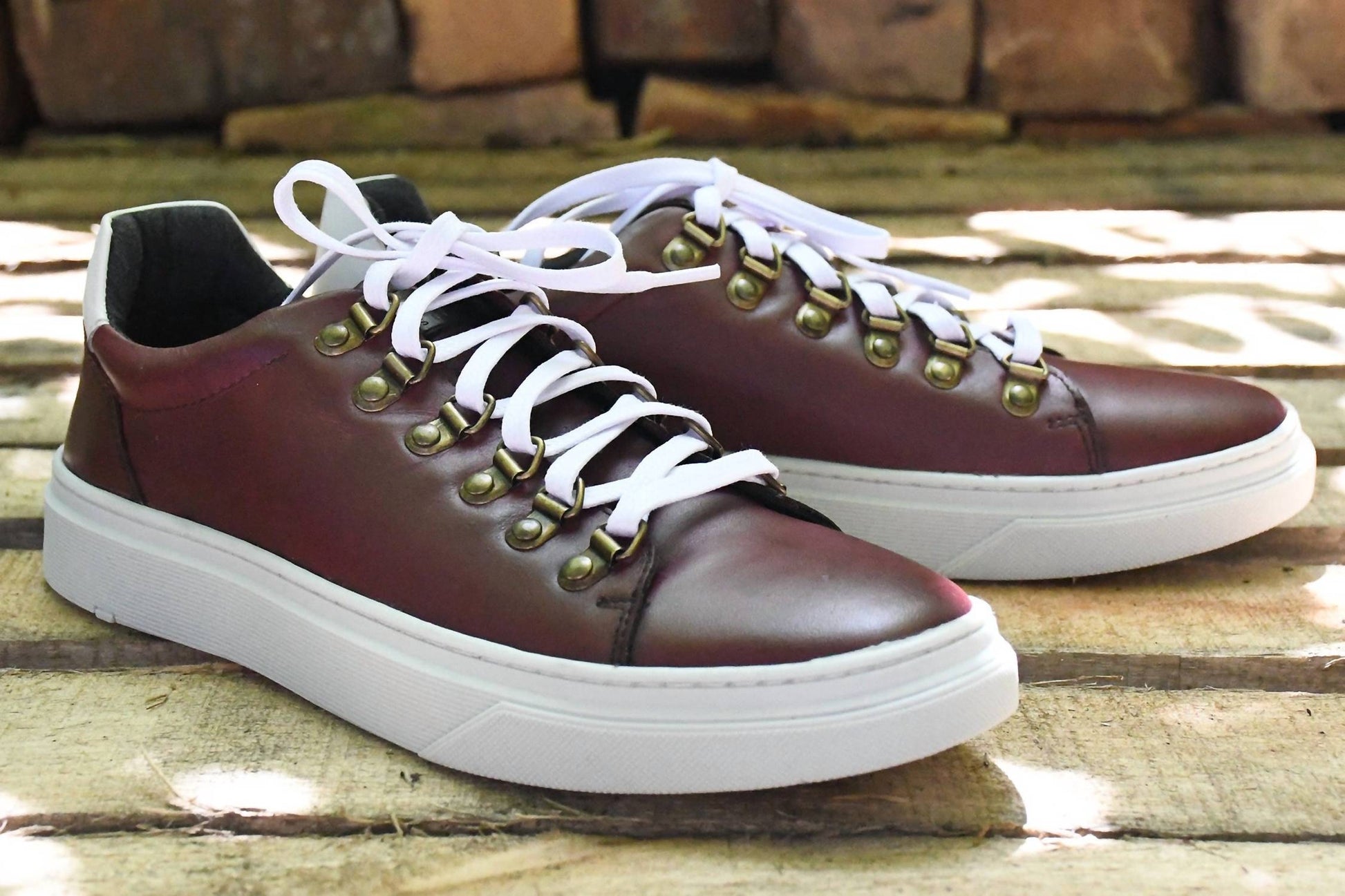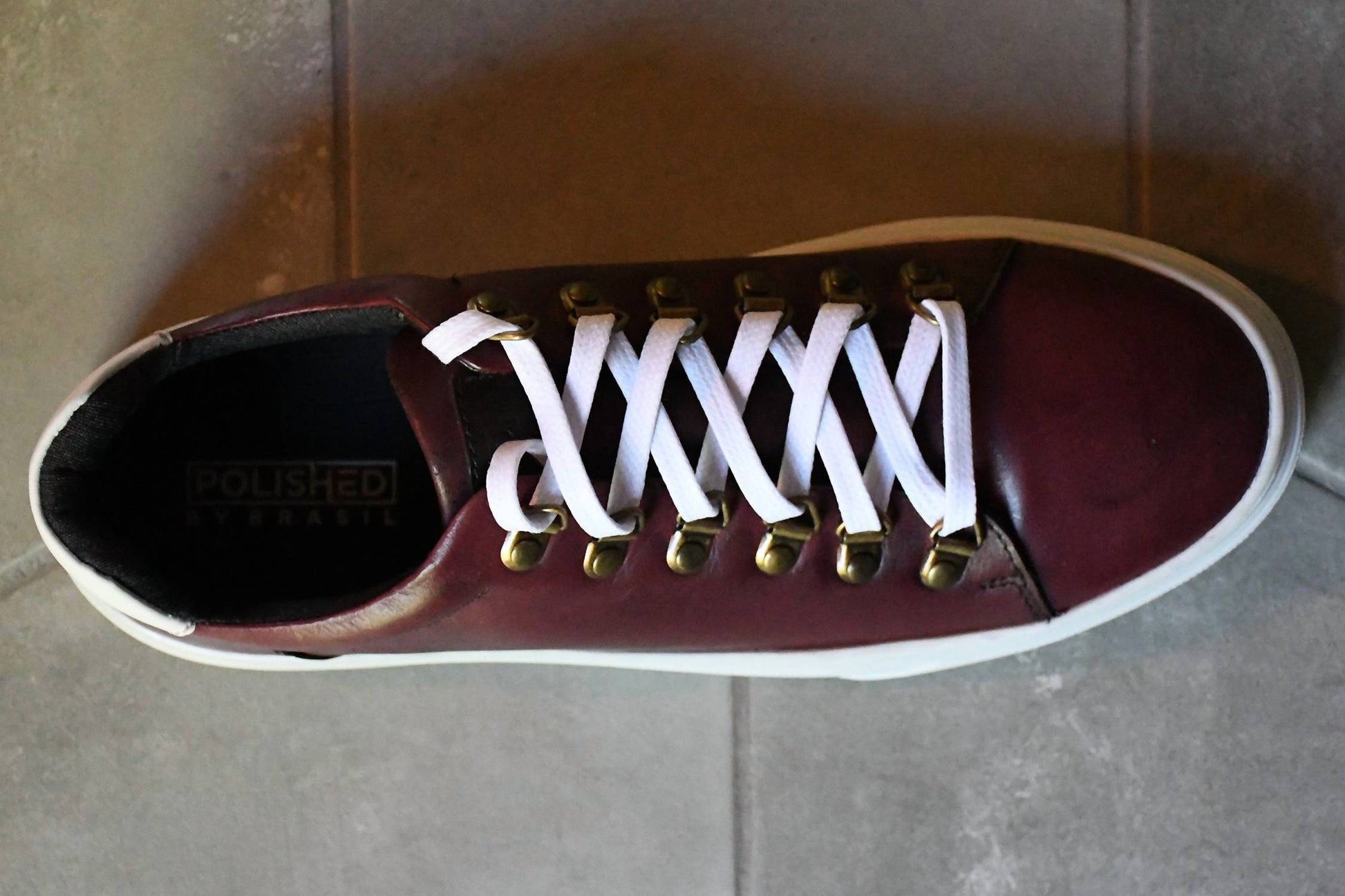 Introducing the Polished Riviera Sneakers, a casual yet stylish choice for contemporary settings, available in a rich burgundy hue. Crafted with a durable poly sole for flexibility and metal grommets for a secure lace fit, these sneakers promise long-lasting comfort. A unique feature is the fabric interior, making them a cozy alternative to standard leather-lined shoes. These sneakers are designed to accommodate a wide range of foot widths by simply adjusting the laces, perfect for both wide and narrow feet.