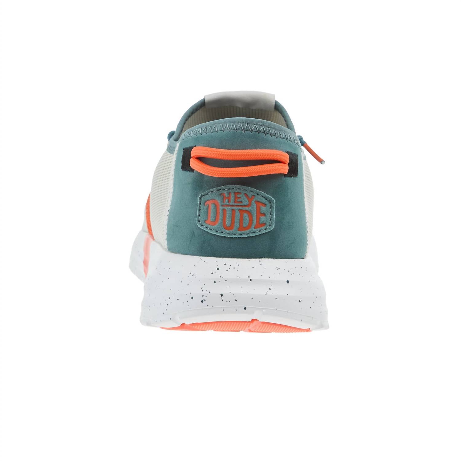 Step into the season with the Men's Sirocco Active Shoes by HEY DUDE, crafted in a striking Blue Grey/Orange blend. These athleisure sneakers feature a slip-on style with an elasticized lace front, a textile liner, and a breathable mesh upper. The lightweight design includes a removable foam insole and textile outsole, ensuring comfort and support. Ideal for summer fitness or Easter gatherings, each shoe weighs only 6 oz, offering agility and ease for all-day wear.