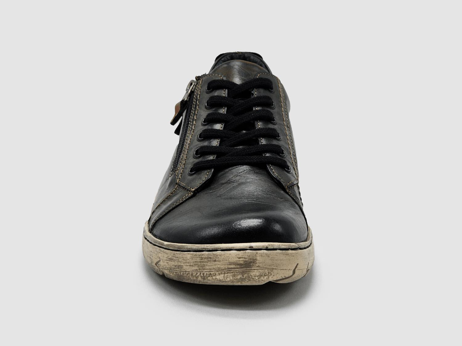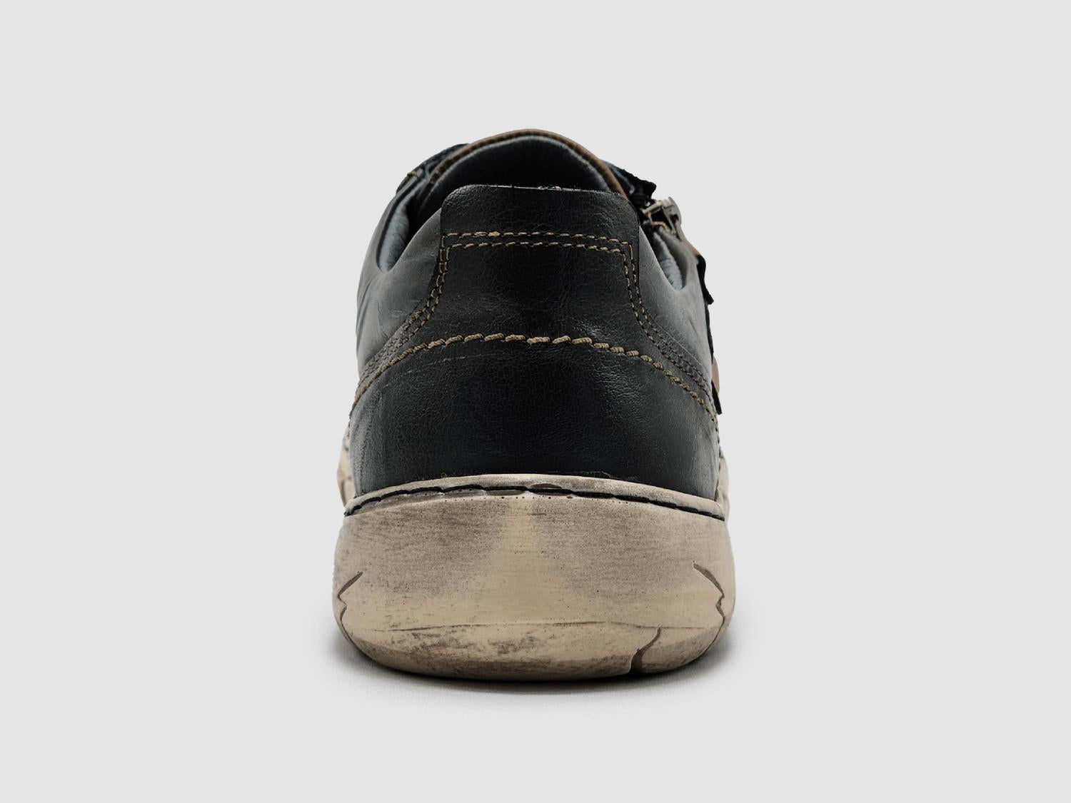 Elevate your footwear repertoire in timeless black. Designed with a stylish casual flair. Feature a practical integrated zipper and a vibrant pop of red. Made from natural leather. Crafted in Poland. Offer lightweight comfort and a low platform heel height. Ideal for spring streetwear and game day occasions.