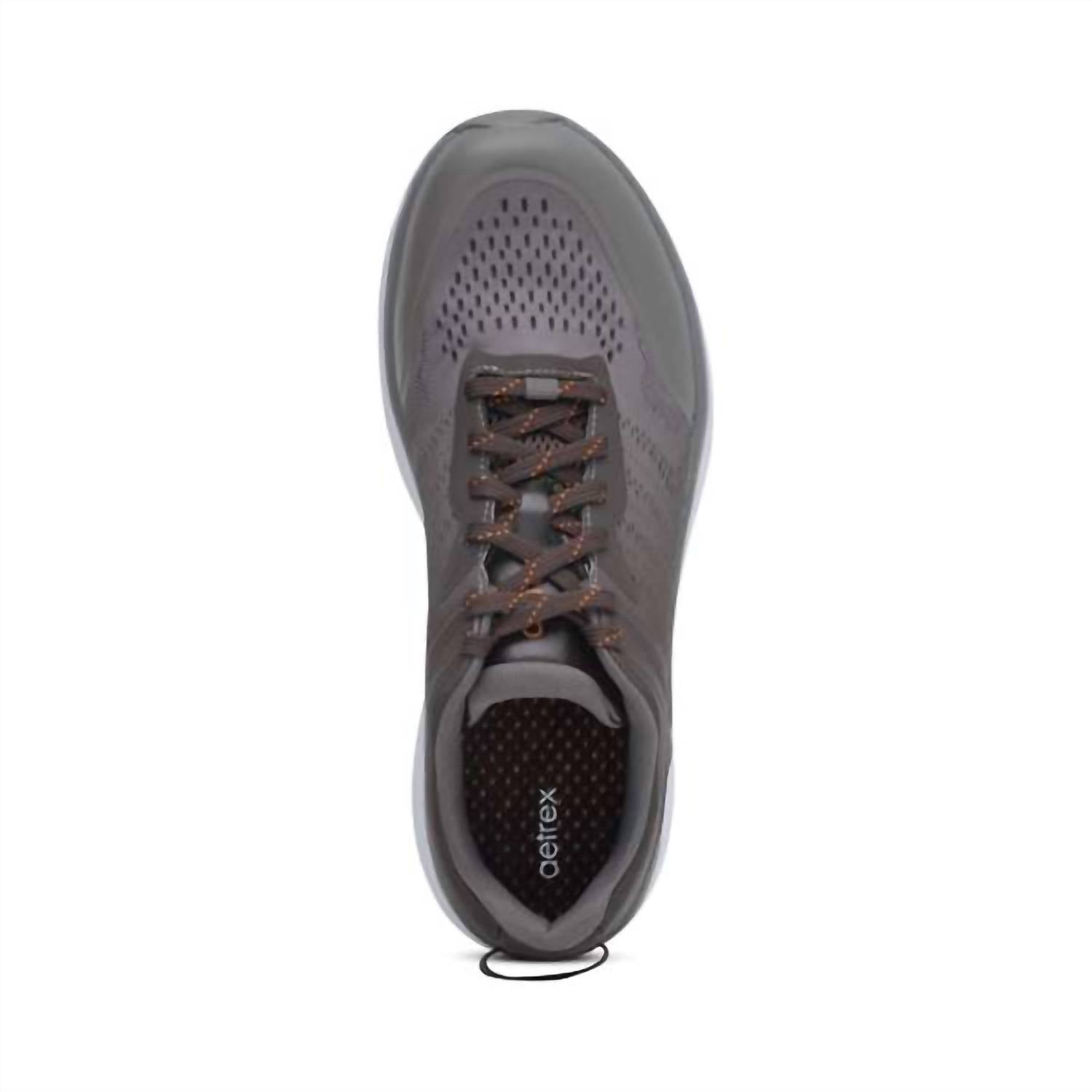 The Aetrex Men's Chase Arch Support Sneaker in grey is designed for fitness and workout enthusiasts who value comfort and style. Featuring a round toe and flat heel, these sneakers blend effortlessly into athleisure trends, making them ideal for spring activities. Closure and care instructions are not specified, but the focus is clearly on functionality with excellent arch support. Perfect for adult men seeking a versatile and supportive option for their workouts.