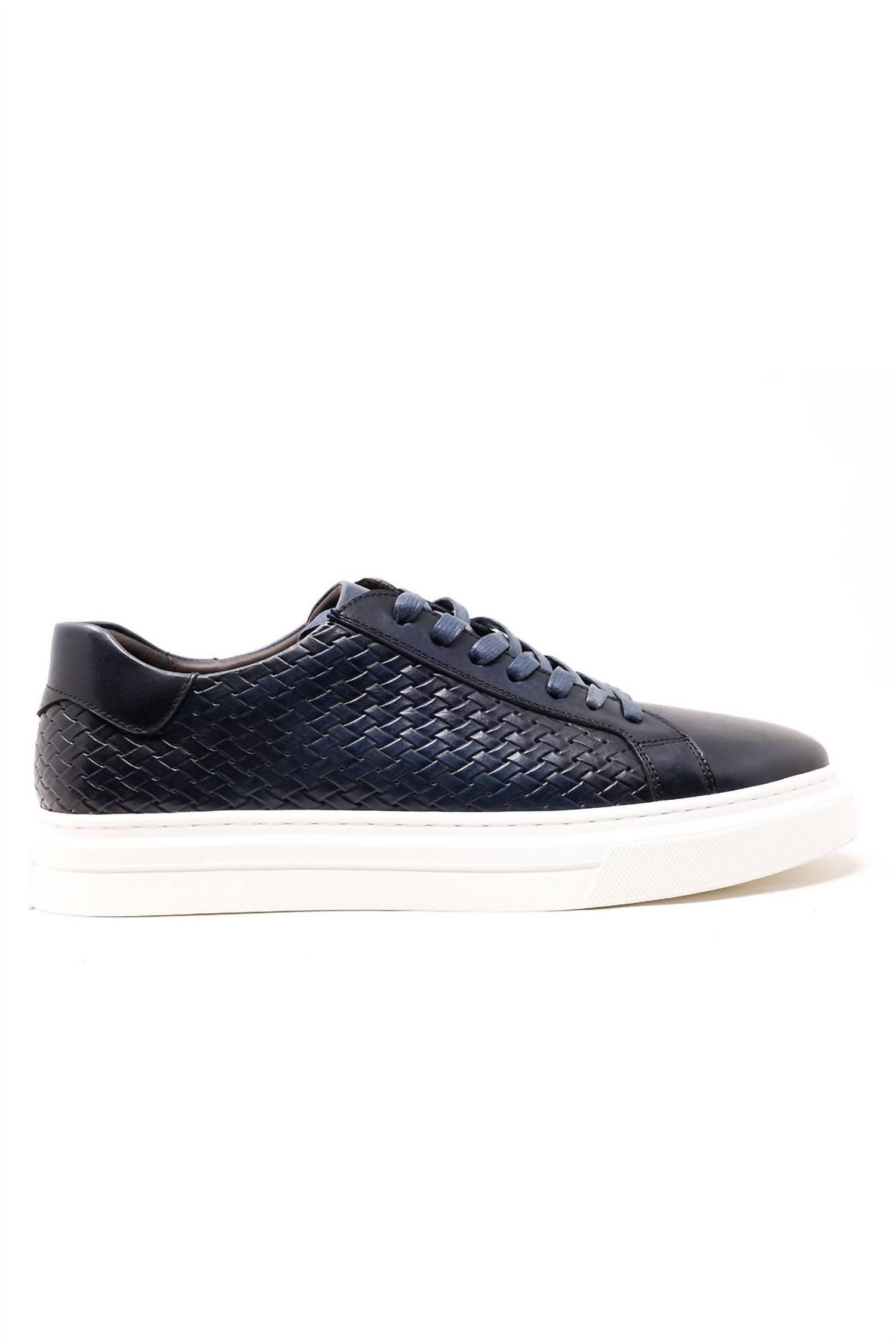 Step up your footwear game with the Men's Stately Show Low Top Sneakers by BARABAS. These sneakers feature a leather upper and lining, complemented by a durable rubber sole and cushy memory foam insole for all-day comfort. The weave-pattern design ensures breathability and enhances the sleek, round-toe silhouette, while the matching color sole provides a unique touch. With a flat heel style under 1" high, these sneakers are perfect for any stylish occasion. Upper and lining material: Leather. Sole: Rubber. Spot clean.
