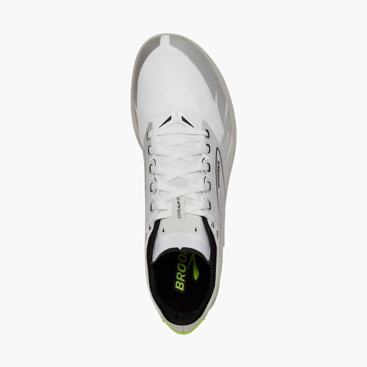 Introducing the Brooks Men's Draft XC Running Shoes, a top choice for cross country racers seeking ultralight comfort and optimal traction. Designed with a customizable upper and soft cushioning, these shoes deliver exceptional performance for those running fast. With a supportive, neutral midsole drop of 3mm, and low heel height, these round-toe shoes weigh just 6.0oz (170.1g), perfect for fitness enthusiasts focused on speed. Available in a striking White/Black/Nightlife color, they embody the athleisure trend for your workout and summer needs.