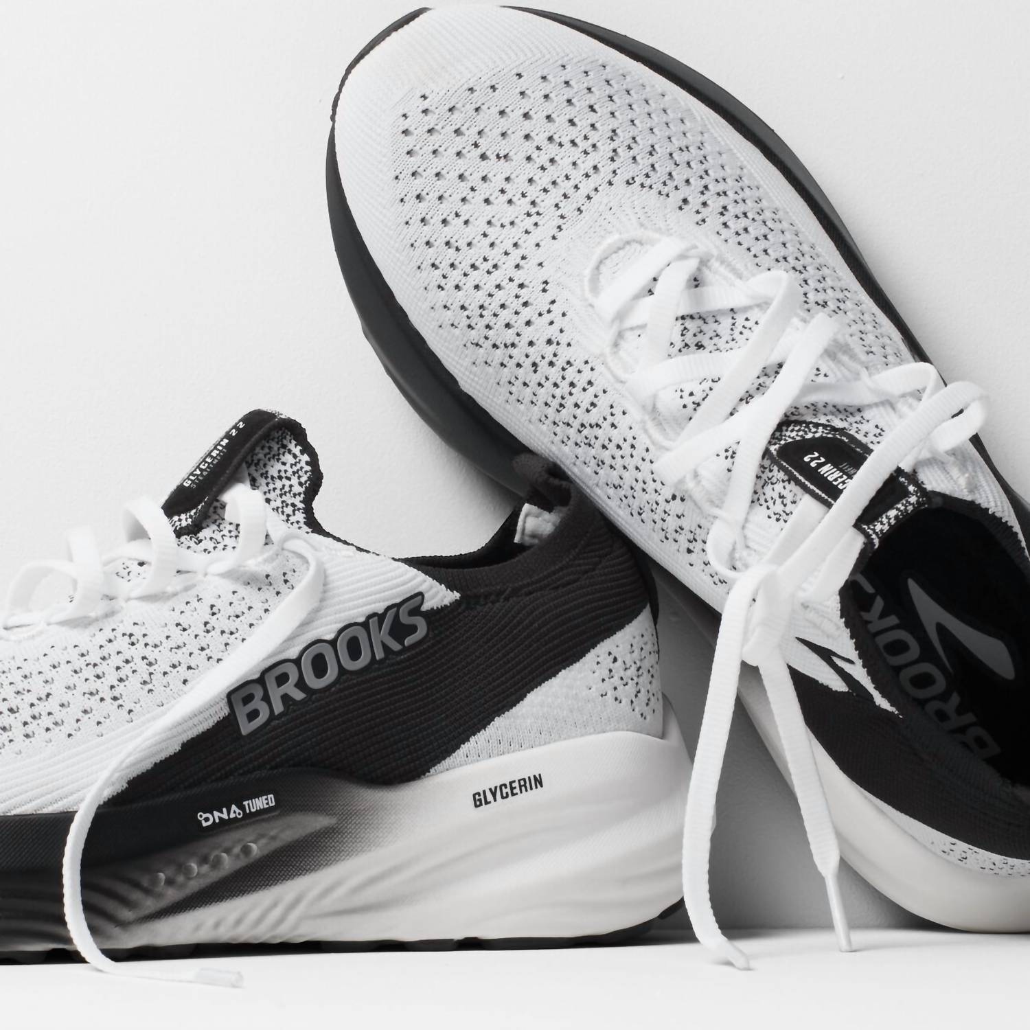 Step into the next level of comfort and performance with the Men's Glycerin Stealthfit 22 Running Shoes by BROOKS, now featuring a new DNA tuned midsole. Designed with a sophisticated blend of white, grey, and black, these shoes boast a double-jacquard fabric and innovative heel construction for an elevated running experience. Ideal for endurance runs, they provide a roomier fit in the toe and heel, ensuring a softer ride with exceptional traction and durability. Experience the pinnacle of athleisure fashion with a focus on summer fitness pursuits.