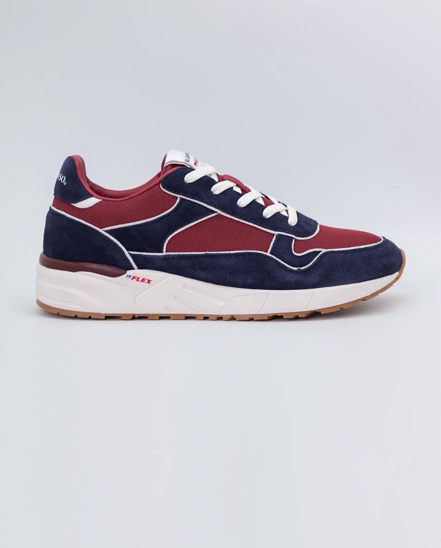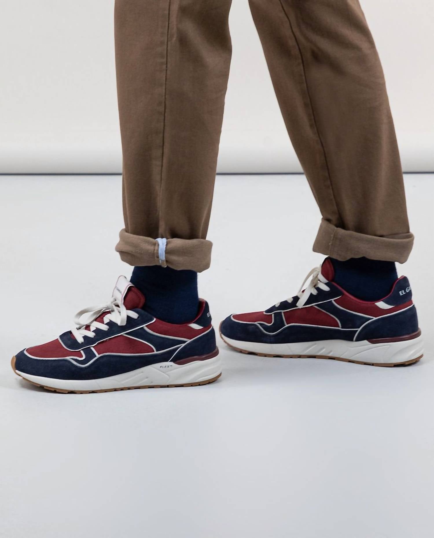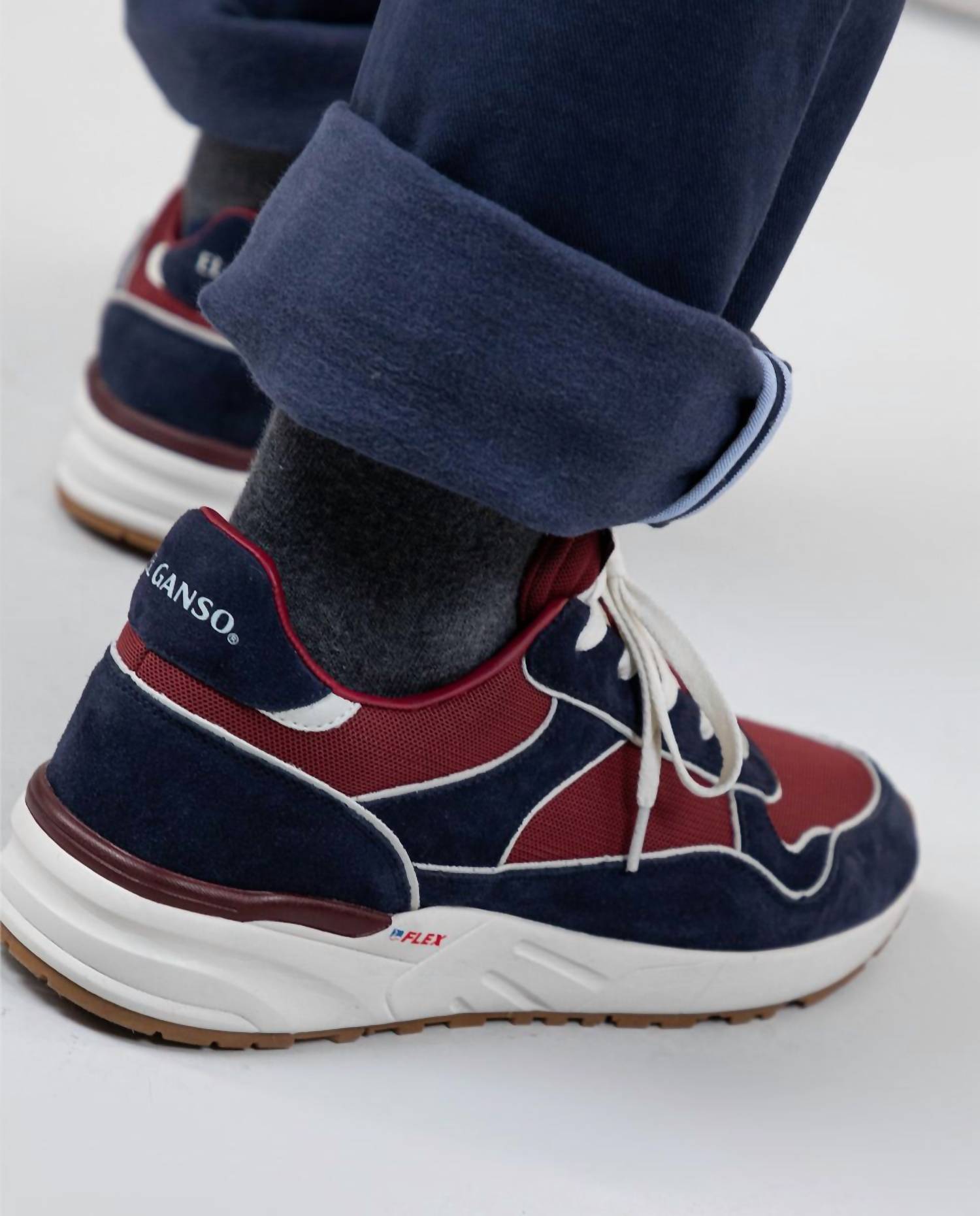 Elevate your Game Day look with the Unisex Track Mix Sneakers by El Ganso, designed in a striking Navy/Red colorway. These sneakers feature a unique combination of 100% recycled polyester mesh fabric and split leather accents, including toecap, heel, lacing, and side pieces. Experience comfort with Flex® technology integrated into the insole's visco-elastic foam top layer and high-density foam cushioning layer for exceptional support. The sneakers are finished with a stylish caramel rubber sole, perfect for adding a streetwear edge to your Summer outfits. Please note, this item runs small; consider purchasing a larger size.
