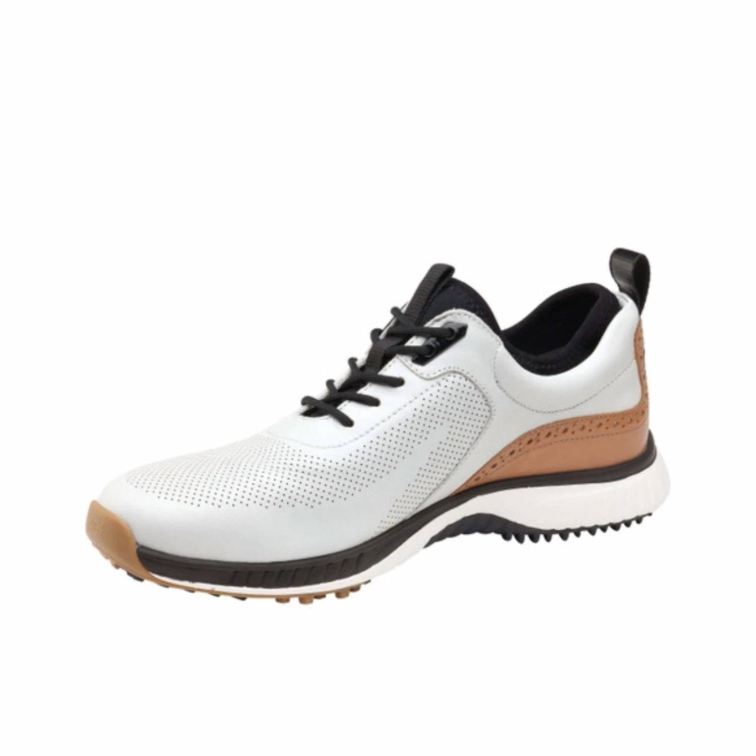 Experience the perfect blend of heritage craftsmanship and modern technology with the Men's H1-Luxe Hybrid Shoes by Johnston & Murphy. Designed to perform seamlessly on and off the course, these athletic shoes feature waterproof leather construction that ensures durability and dryness. Highlighted with J&M Smart Degree Technology®, these shoes offer advanced temperature control, keeping your feet comfortable in varying conditions. Ideal for Thanksgiving wear, these shoes feature a round toe and flat heel design, crafted in sophisticated white leather.