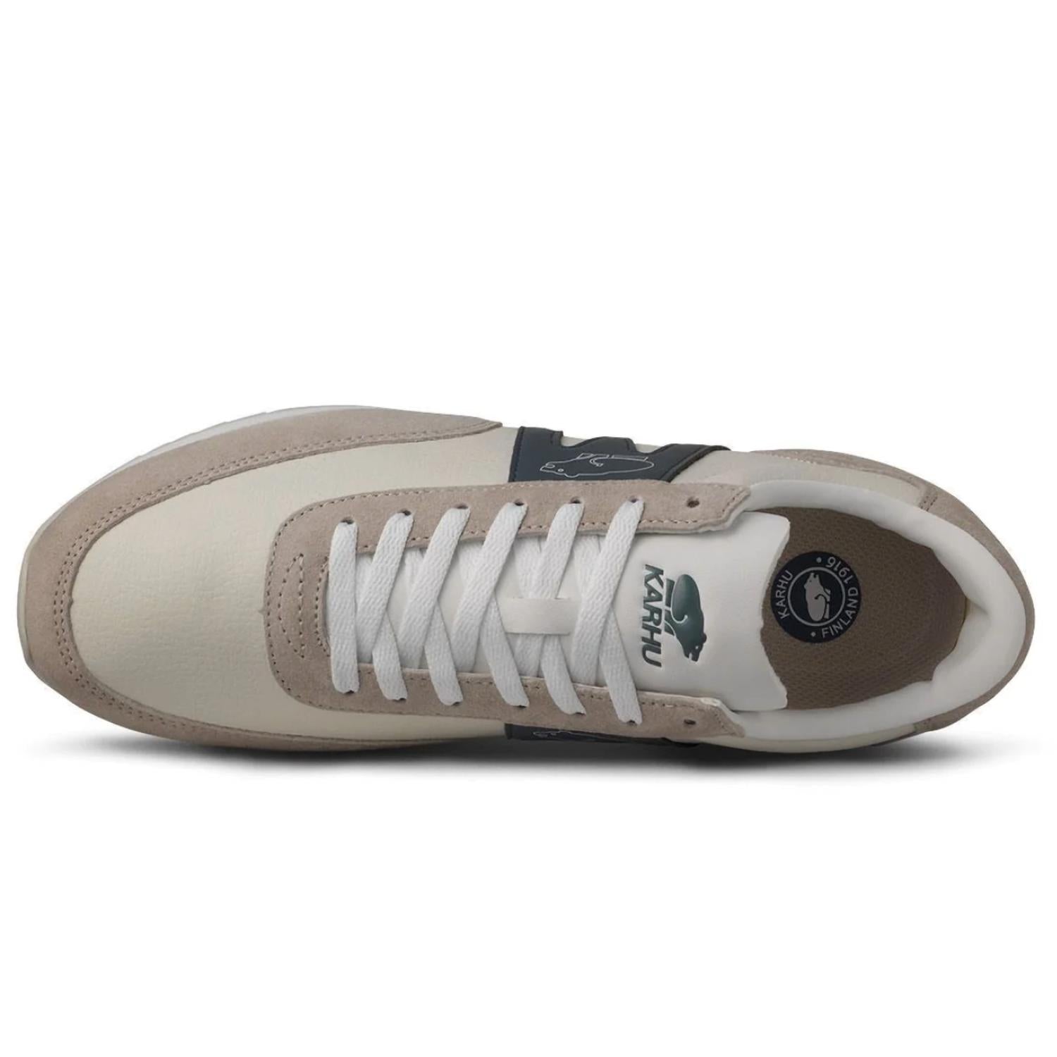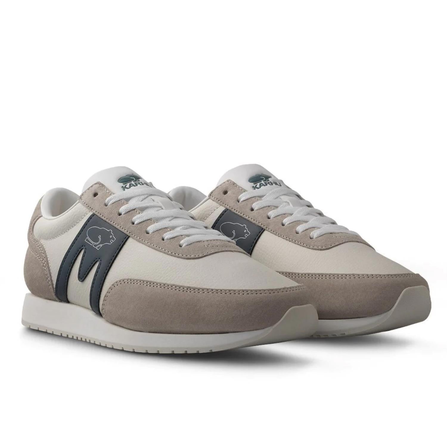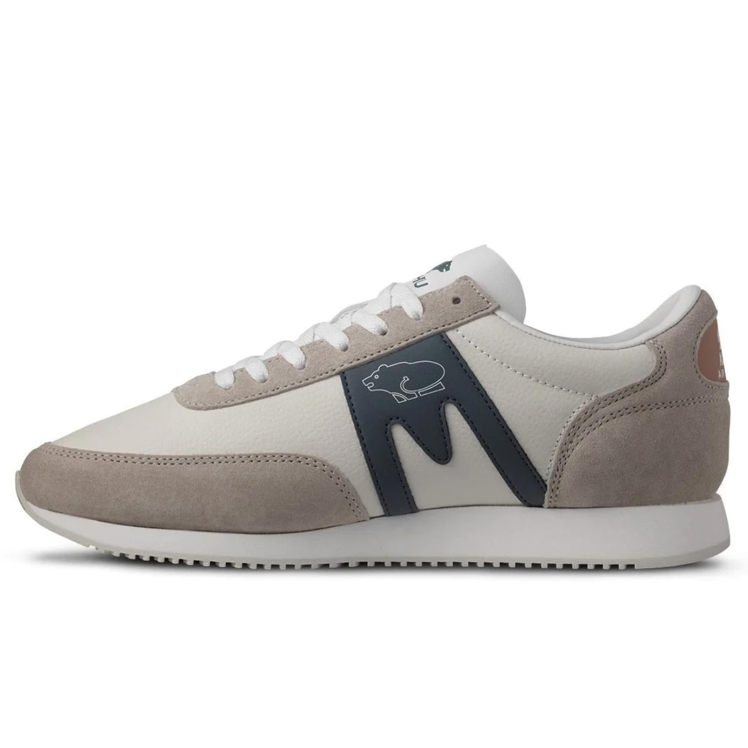 Introducing the Men's Albatross 82 Sneakers by Karhu, a stylish and functional choice. These sneakers feature an iconic Air Cushion sole design and are crafted from a premium leather upper with nubuck leather layers, complemented by a faux leather M logo. Designed for comfort, they include a foam insole with arch support, ensuring a lightweight experience for your running or casual outings. Available in the sleek Silver Lining and Stormy Weather color scheme to elevate your footwear collection.