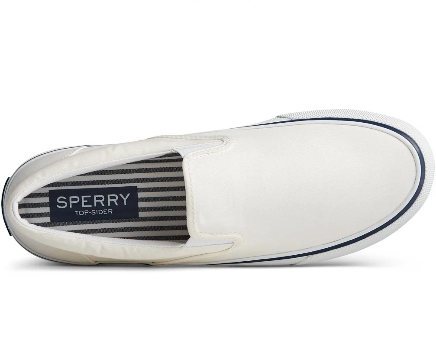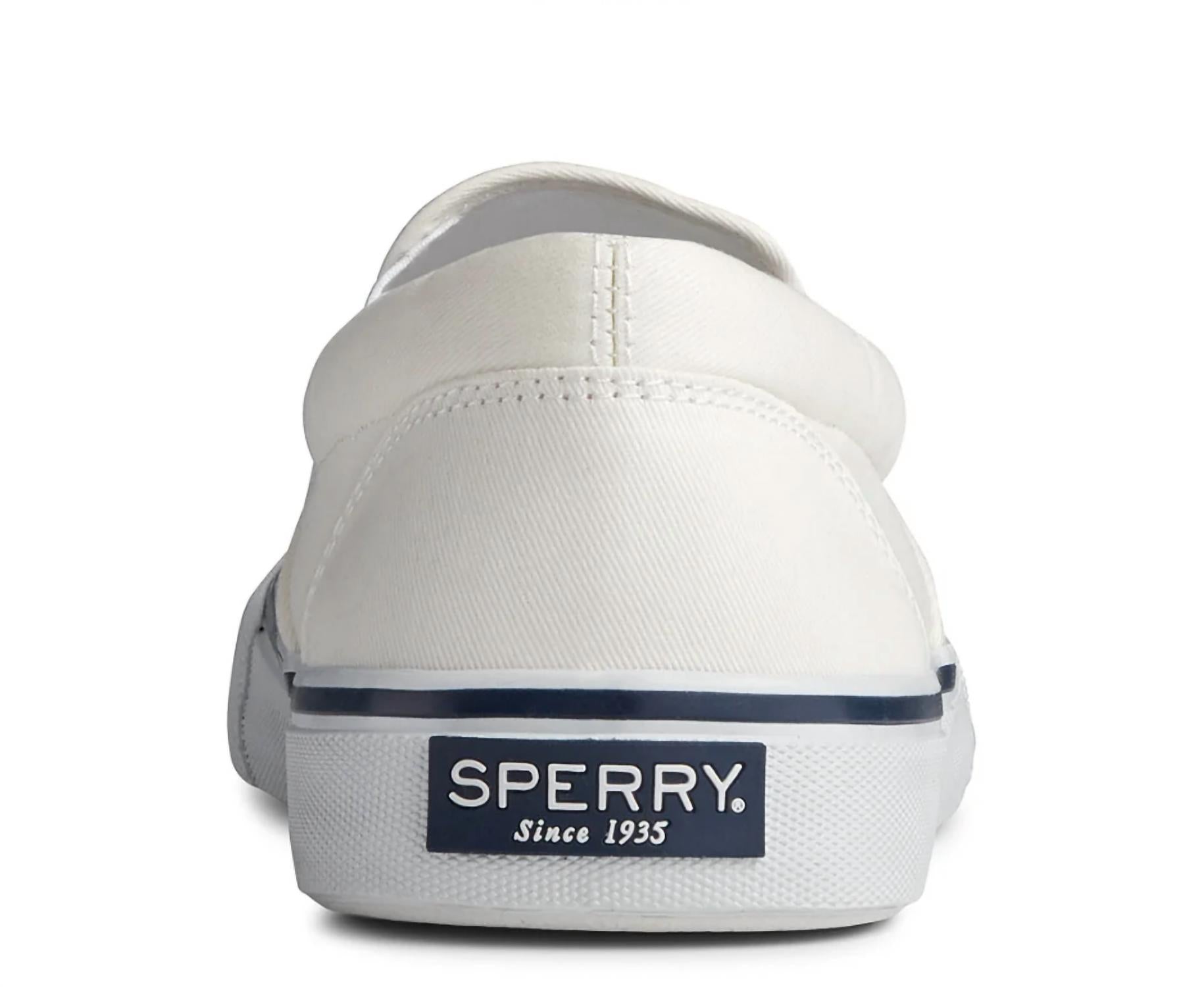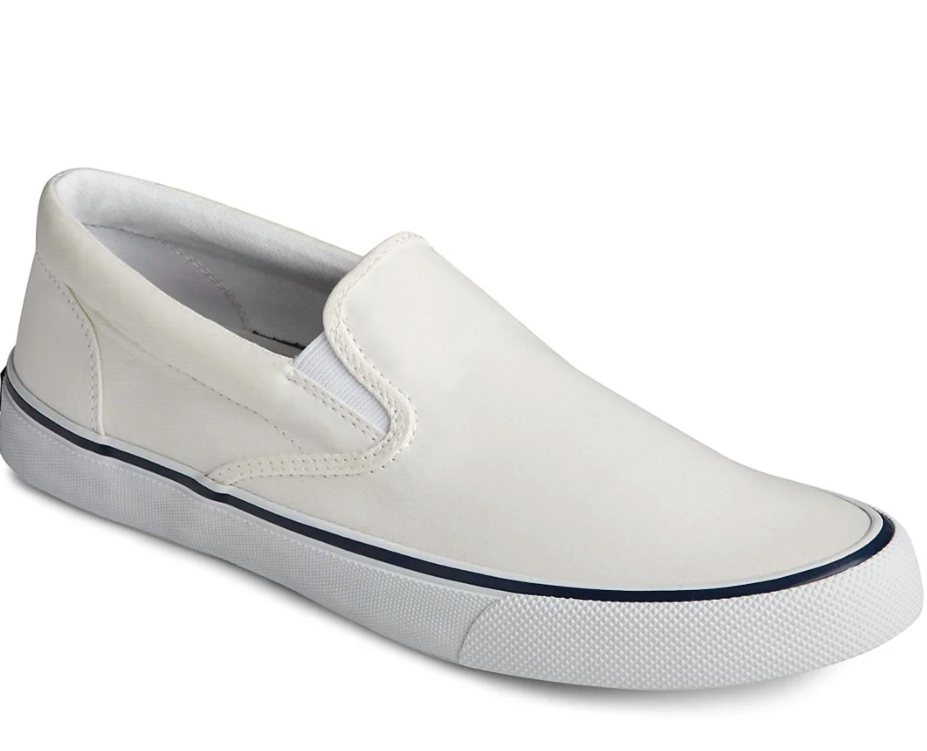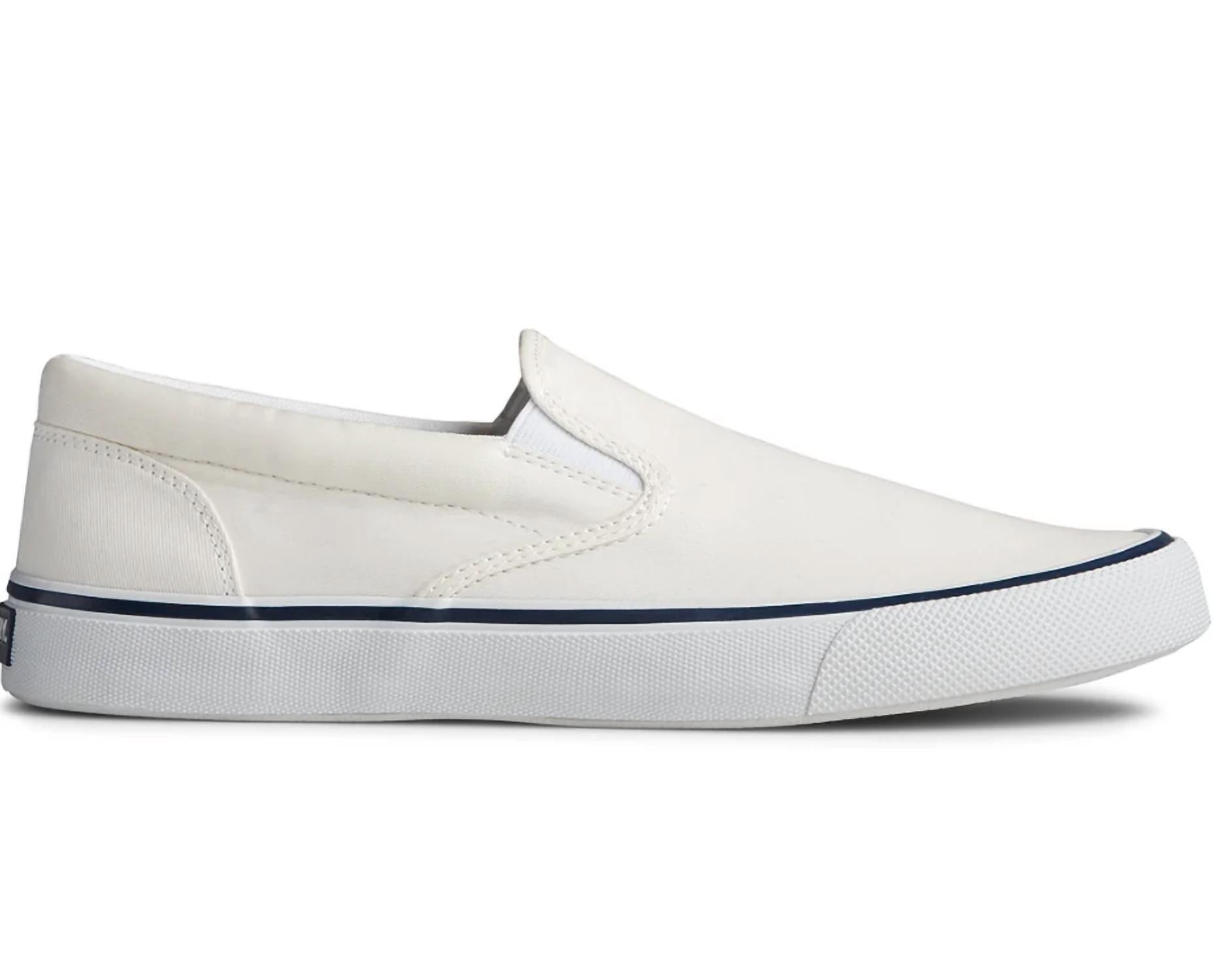Step into comfort with the Men's Striper II Slip On Sneaker by Sperry, a perfect companion for your spring travel adventures. Designed in classic white, these sneakers feature a round toe and a flat heel, offering both style and ease. Enjoy the effortlessly sleek appeal and practical design that makes them ideal for any casual occasion. Crafted with attention to detail, these shoes promise to be a staple in your wardrobe.