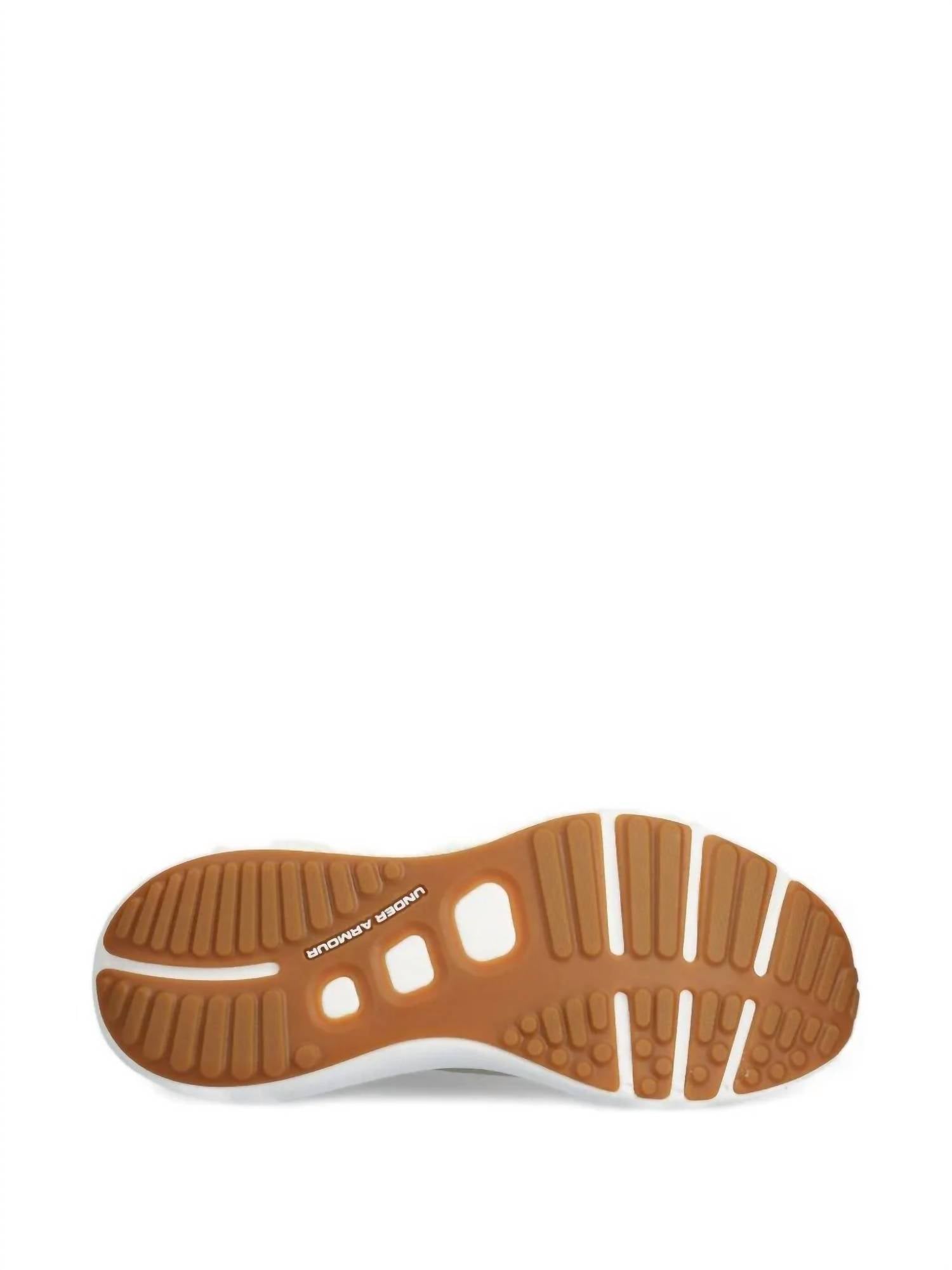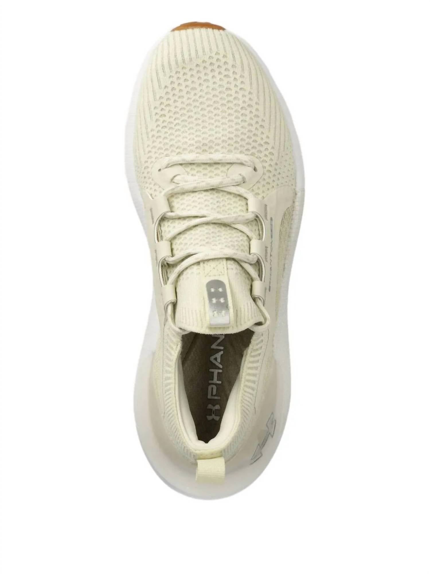 Experience unparalleled comfort and performance with the Men's HOVR Phantom 3 Running Shoe by Under Armour. These athletic shoes, presented in White Quartz/Silver, feature a stretchy UA IntelliKnit upper and an external heel counter for stable support. With a weight of 11.1 oz and equipped with standard laces, a molded midfoot panel, and a knit collar for easy entry, they ensure an unmatched fit and cushioning. Made for fitness workouts and athleisure style, they are the perfect choice for your training regime this spring.