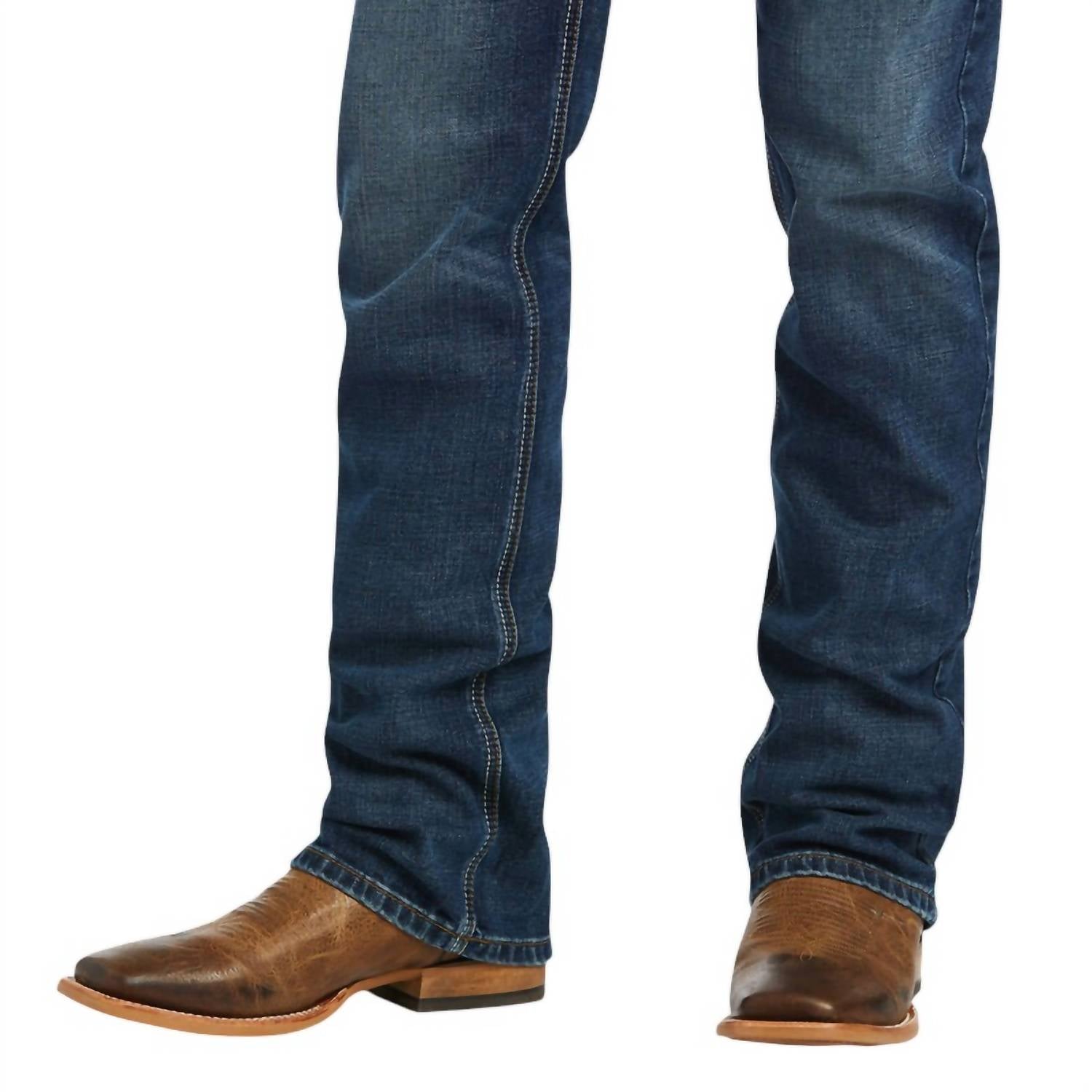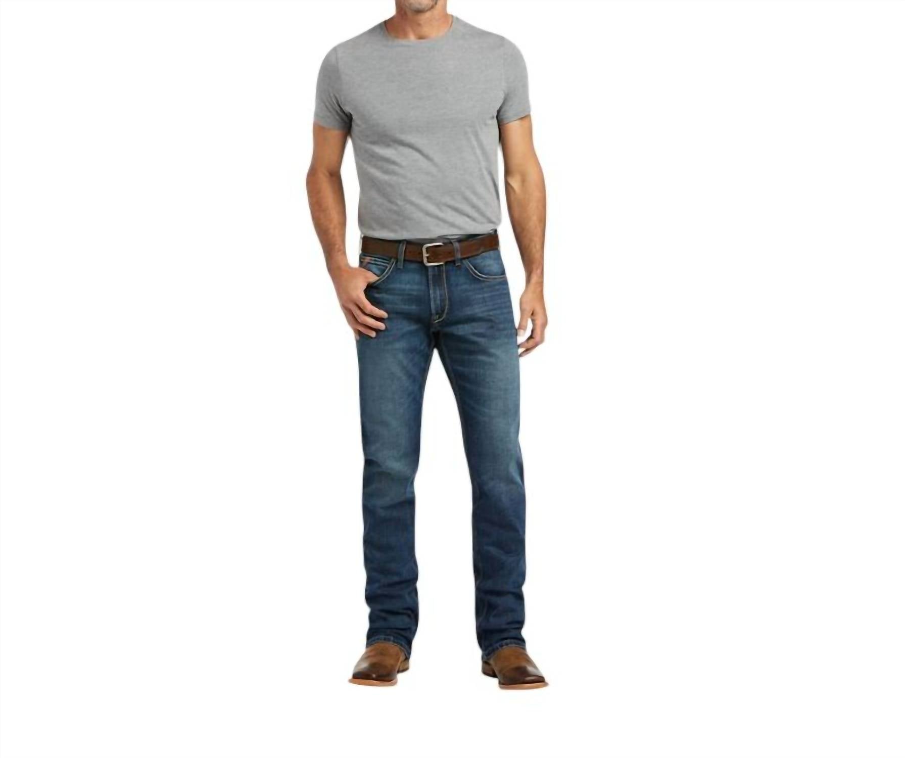These men's jeans feature a straight leg with a straight fit through the seat and thigh. They have a mid-rise, zip closure, and pockets. Made from 99% cotton and 1% spandex. Length: 42". Machine wash cold. Imported.