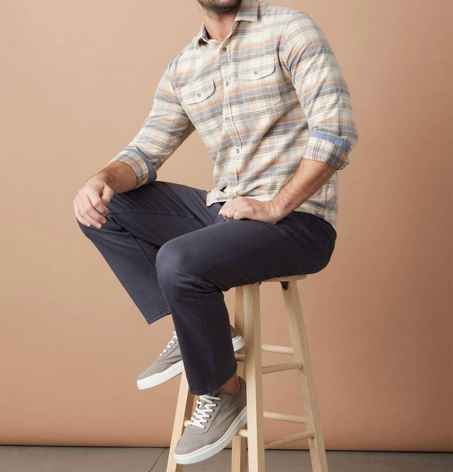 Introducing the Holden 5 Pocket Garment Dye Pants by Flags & Anthem, a stylish option for men seeking both comfort and style. Made from a soft cotton blend(75% Cotton, 19% Rayon, 4% Tencel, 2% Spandex), these charcoal pants feature a high-rise waist and a straight leg style. Their traditional 5-pocket styling and button closure make them perfect for both workwear and a relaxed holiday party look. Care for these versatile pants is easy with machine wash and tumble dry instructions.