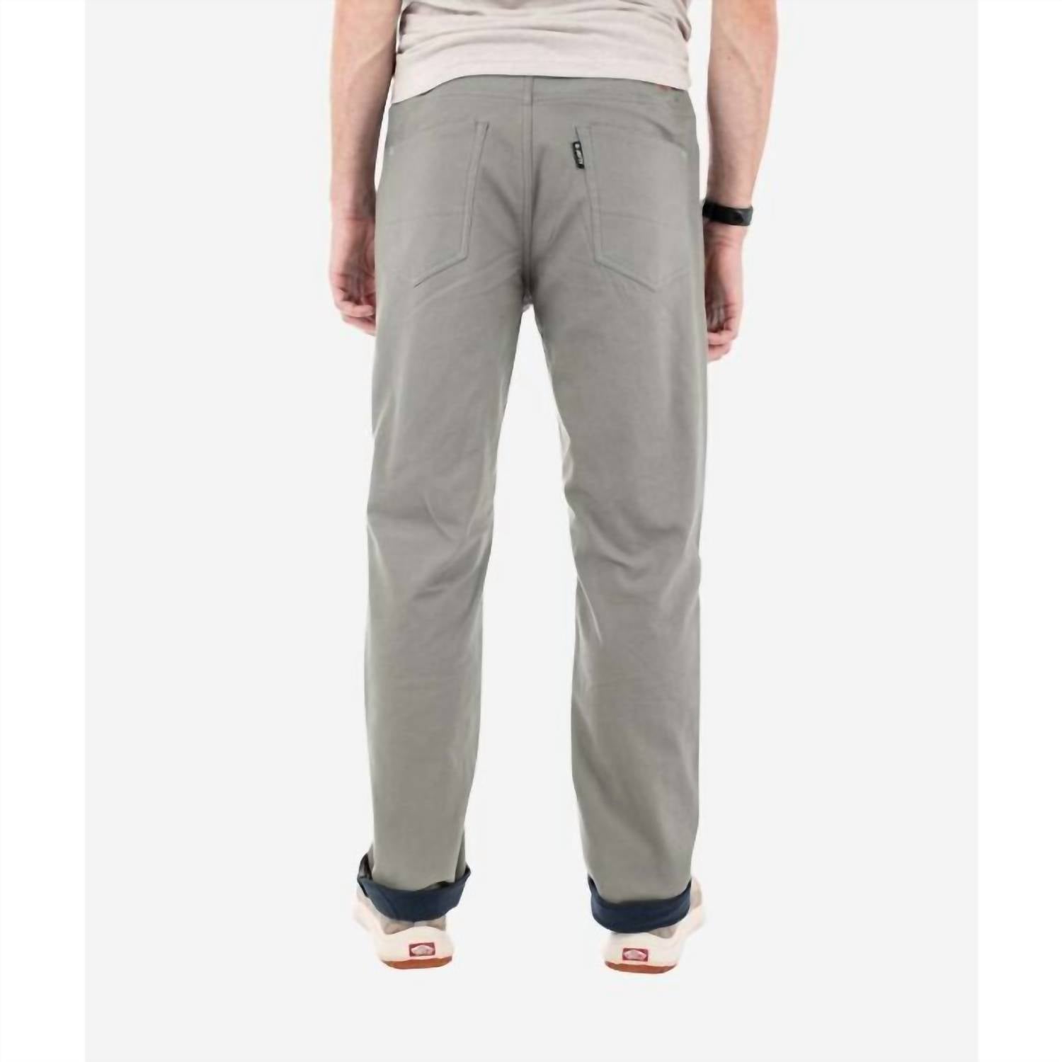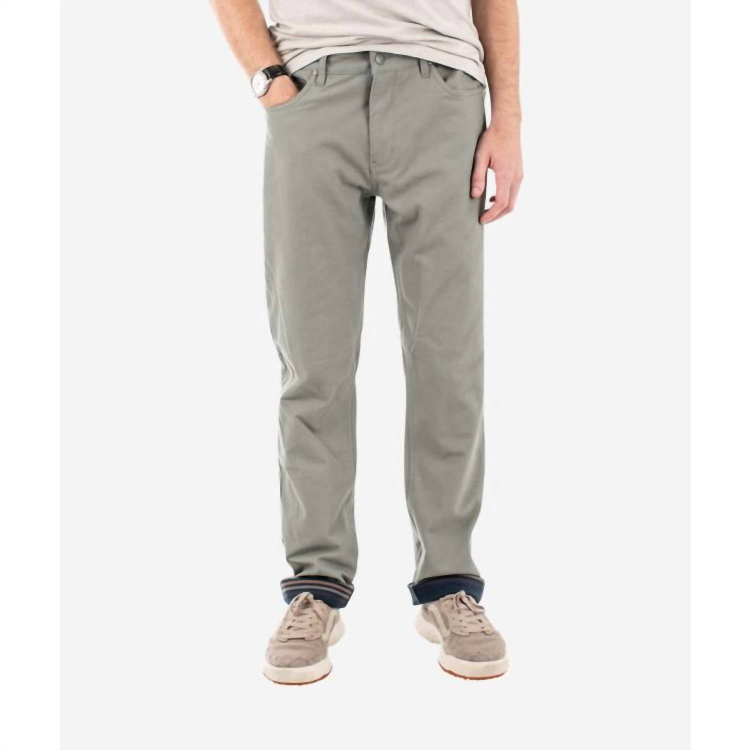 Introducing the Mariner Lined Pants by Jetty, a must-have for colder days with their warmth-enhancing features. Made with a combination of 98% cotton and 2% spandex stretch canvas, these straight-leg pants are lined with a flannel composed of 60% cotton and 40% Oystex RPET for added comfort. They feature denim-style pockets, rivets at stress points, and a back waist leather label, and are finished with a practical button and zip-fly closure. With a 32" inseam and 7" leg opening, these agave-hued pants for men are ideal for those seeking solid-colored, functional style.