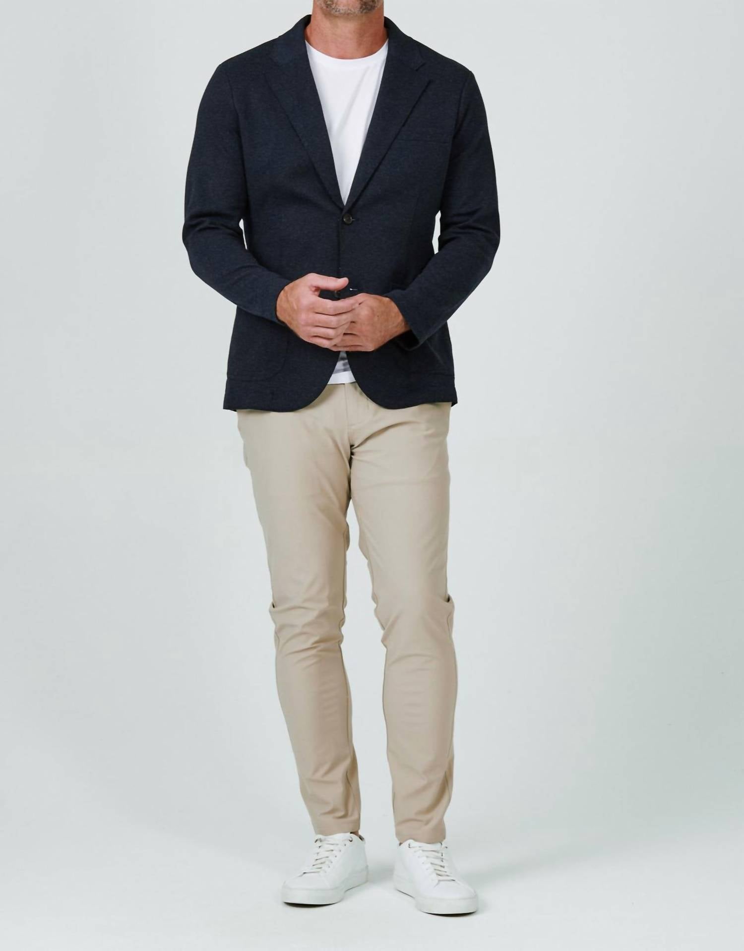 Elevate your wardrobe with the Generation Malibu Blazer by 7Diamonds, crafted for the modern man seeking both style and comfort. This navy blazer features long sleeves and a classic collar, making it a perfect addition to any suit collection. Made from a unique blend of 65% Polyester, 30% Rayon, and 5% Spandex, this garment promises a soft hand feel and functional wear. The blazer is equipped with button closure and pockets for practicality, and it can be easily cared for with a machine wash on a delicate cycle and low tumble dry. Model is 6'1" and wears a size medium.