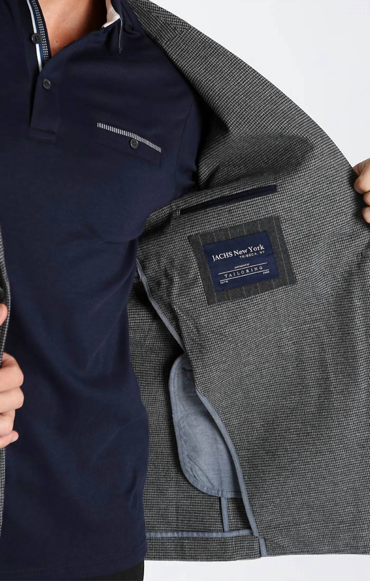 Meet the Marquis Stretch Blazer from JACHS NEW YORK, a solid staple for the discerning man. Crafted with long sleeves and a cotton blend of 98% cotton and 2% spandex, this blazer offers a classic fit with true-to-size comfort. It features a two-button closure and is half-lined with chambray for added sophistication. Made for versatility, it includes functional buttonholes, a double vent back, notch lapels, and multiple pockets, perfect for fall occasions.