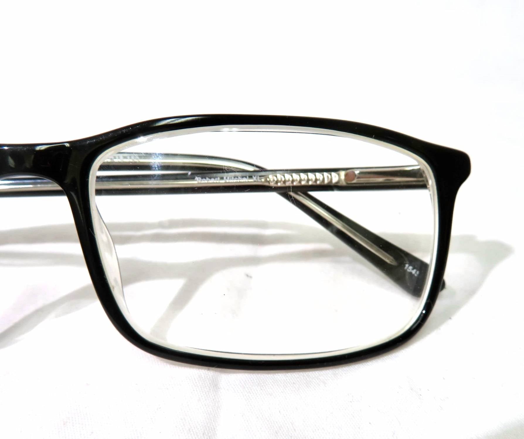 Introducing the Men's RMXL7001 Rectangle Eyeglasses by Robert Mitchel, a stylish choice in sophisticated black/crystal. These sunglasses feature a comfortable fit with a bridge width of 18mm, lens width of 59mm, and temple length of 150mm. The sleek rectangle style adds a modern edge to your look. Origin: Information not provided.