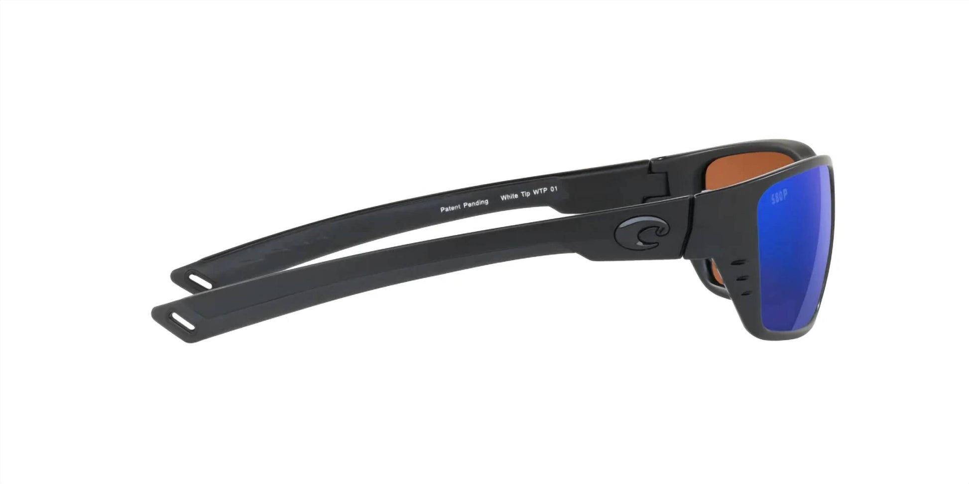 Experience the adventurous spirit of the Men's Whitetip Sunglasses by Costa Del Mar. These sunglasses feature Blackout frames paired with Green Mirror polarized polycarbonate lenses (580P) for optimal visual clarity and performance. Engineered with a C-Wall coating, they are scratch-resistant and repel water, oil, and sweat for easy maintenance. Designed with a narrow fit, gripper temple holes, and a vented front, these rectangular frames offer style and practicality on any journey. Dimensions: Frame Width 131 mm, Bridge Width 18 mm, Lens Width 58 mm, Lens Height 38 mm, Temple Arm Length 122 mm.