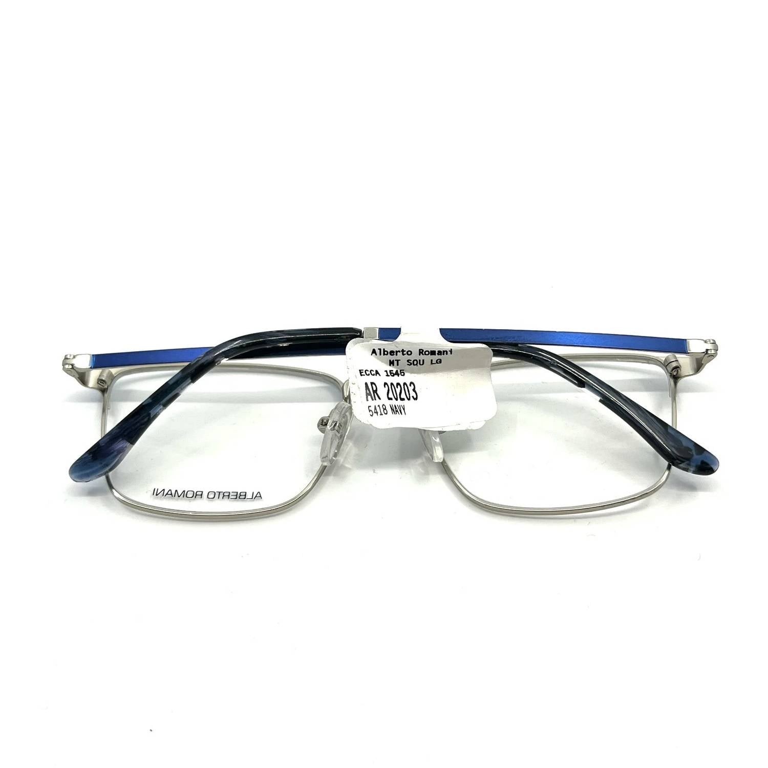 Introducing the Men's Ar 20203 Eyeglasses by Alberto Romani, a stylish choice for those seeking refined eyewear. These square eyeglasses boast a full rim design, crafted from a combination of acetate and metal for durability and comfort. Dimension details include 54mm lenses, an 18mm bridge, and 140mm temple length. Available in a sleek Blue/Silver colorway, these glasses offer a perfect blend of style and practicality.
