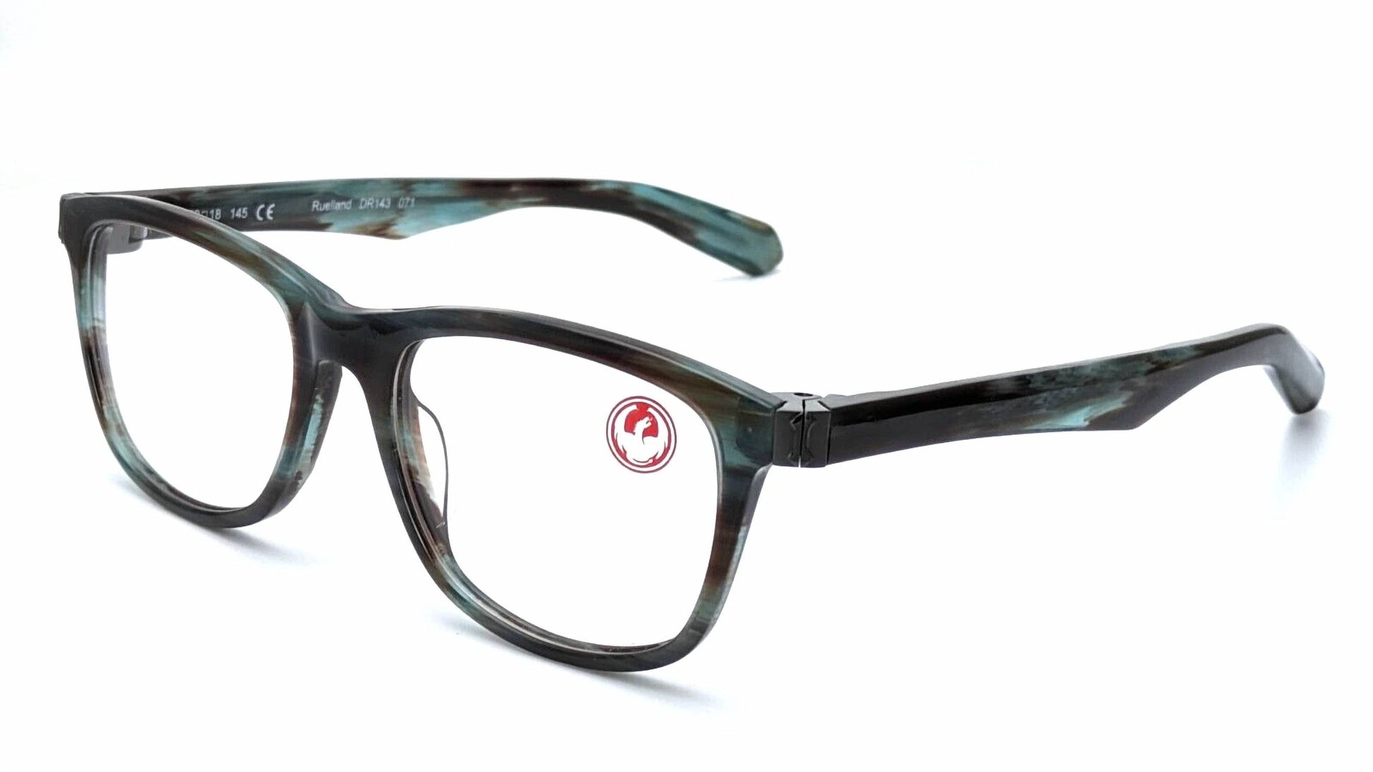 Introducing the Men's Reulland Eyeglasses by Dragon Alliance, a stylish choice for any occasion. These square frames in a sophisticated teal brown showcase a sleek design crafted from high-quality plastic. Lens specifications include a width of 52 mm, a bridge width of 18 mm, and temple length of 145 mm, all complemented by clear lenses. Elevate your eyewear collection with these exceptional eyeglasses.
