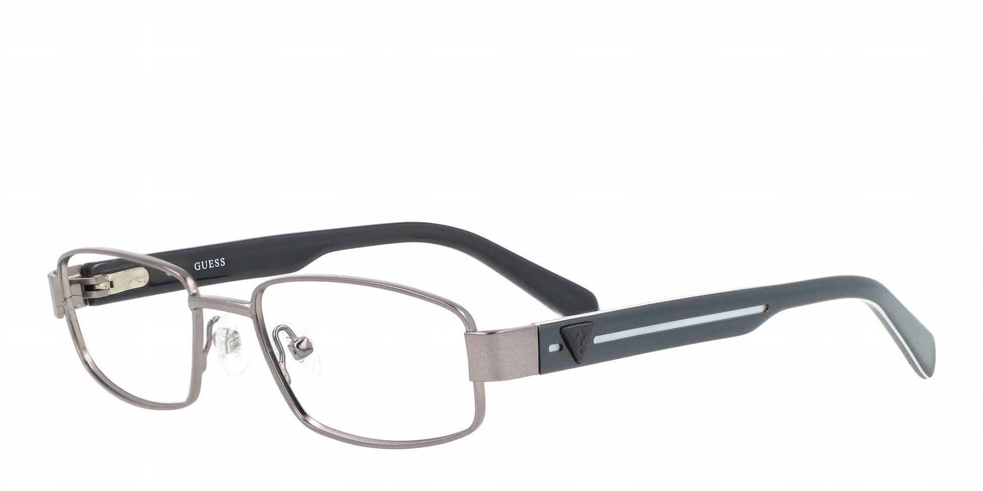 Discover the Unisex Gu9101-3 Eyeglasses by Guess, a perfect blend of style and comfort in gunmetal grey. These sunglasses feature sleek rectangular frames with softly rounded lower rims and a gently curved browline for a flattering appearance. The featherweight metal construction ensures both sturdiness and ease, making them ideal for everyday wear. Dimensions include a lens width of 47 mm, arm length of 130 mm, and a nasal bridge of 16 mm.