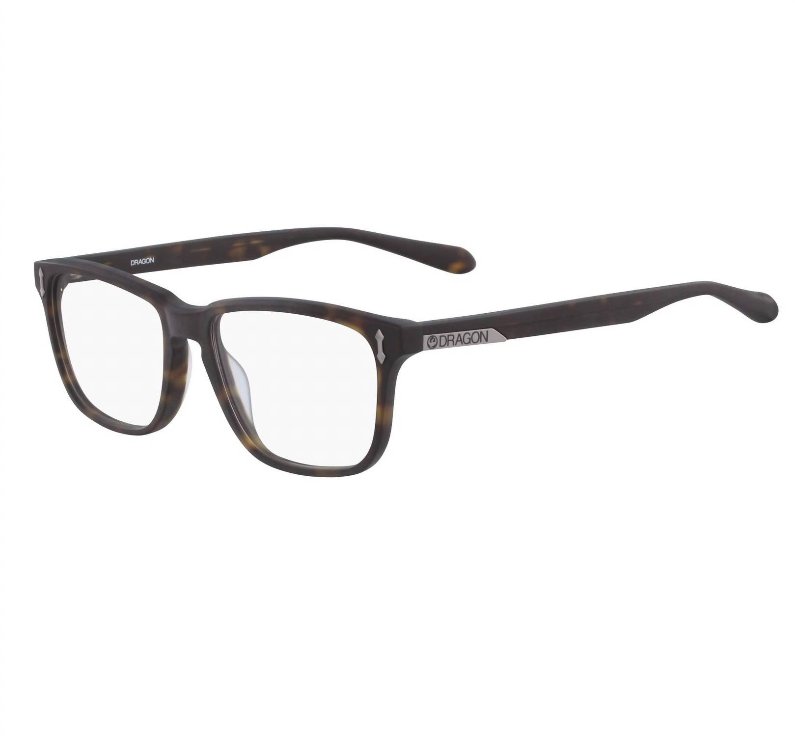Discover the Men's Downington Eyeglasses by Dragon Alliance, expertly crafted for a modern look. These eyeglasses feature a sleek rectangular shape in a sophisticated Matte Tortoise hue. Designed with 53 mm lens width, 16 mm bridge width, and 140 mm temple length, they offer a comfortable and precise fit. Made from durable plastic, these glasses are perfect for everyday wear with clear lenses enhancing their versatile appeal.