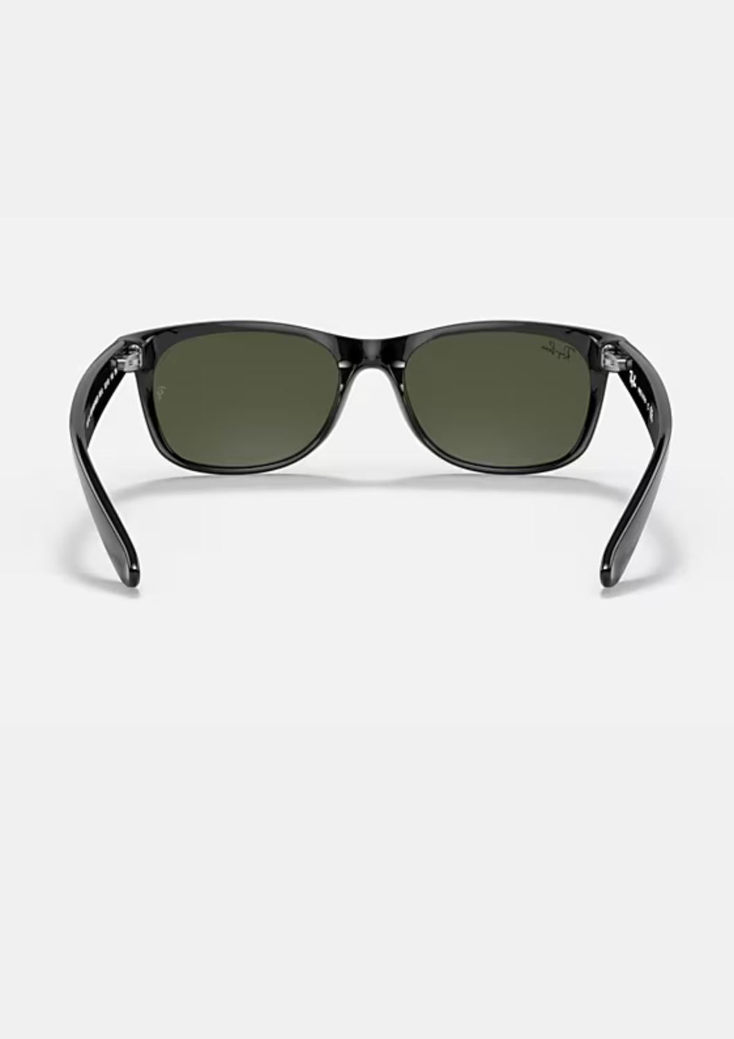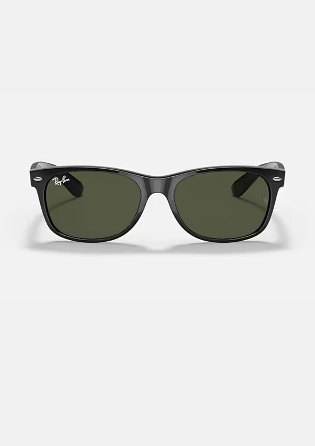 Enhance your eyewear collection with the Men's New Wayfarer Classic RB2132 901 Sunglasses by Ray-Ban, crafted with a polished black frame and G-15 green lenses. These sunglasses feature a stylish square design, offering a modern twist on a timeless silhouette. Made from durable nylon, they promise long-lasting wear. Elevate your everyday look with these iconic shades. Size 55 18mm. Lens height 40.8mm. Temple Length 145mm.