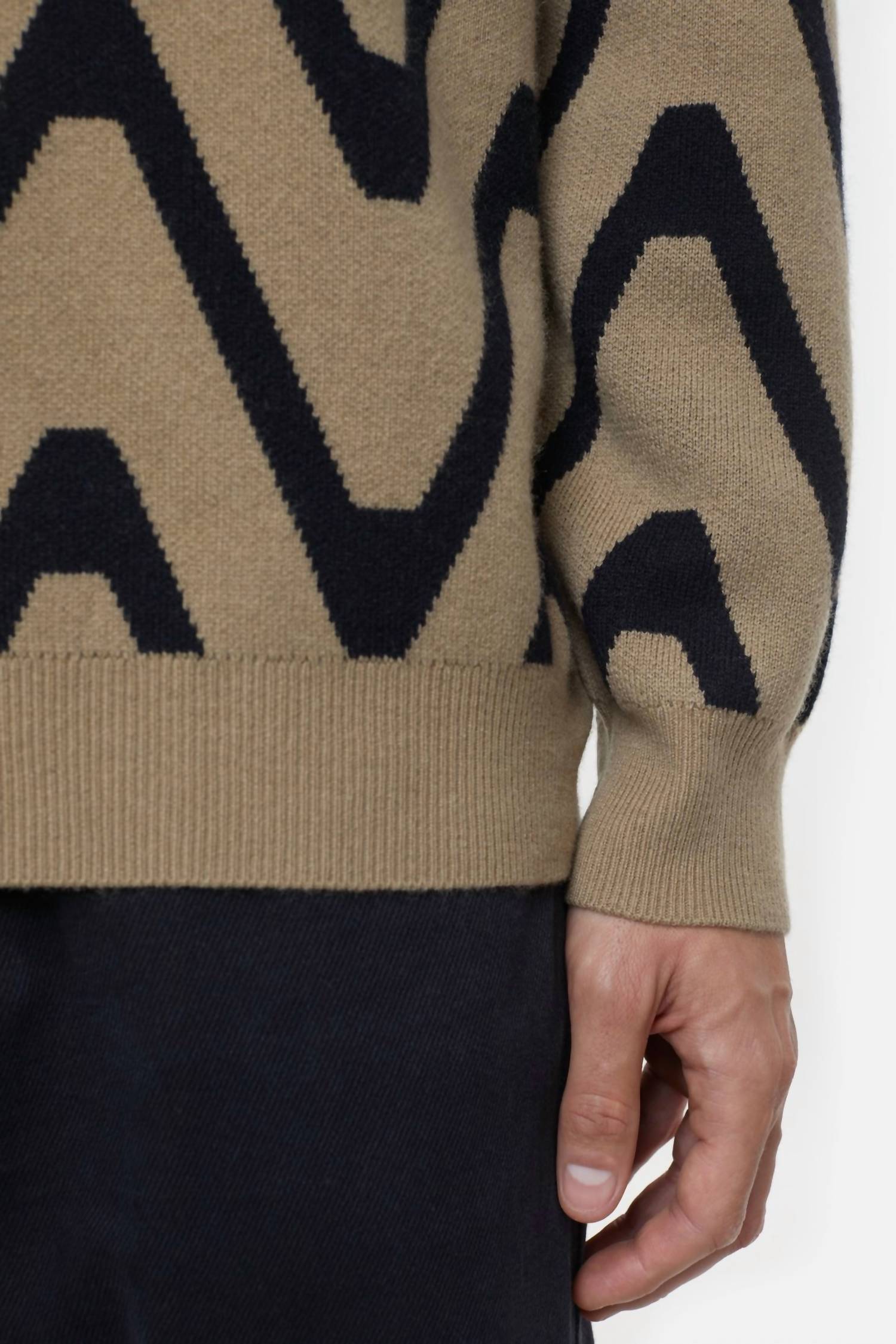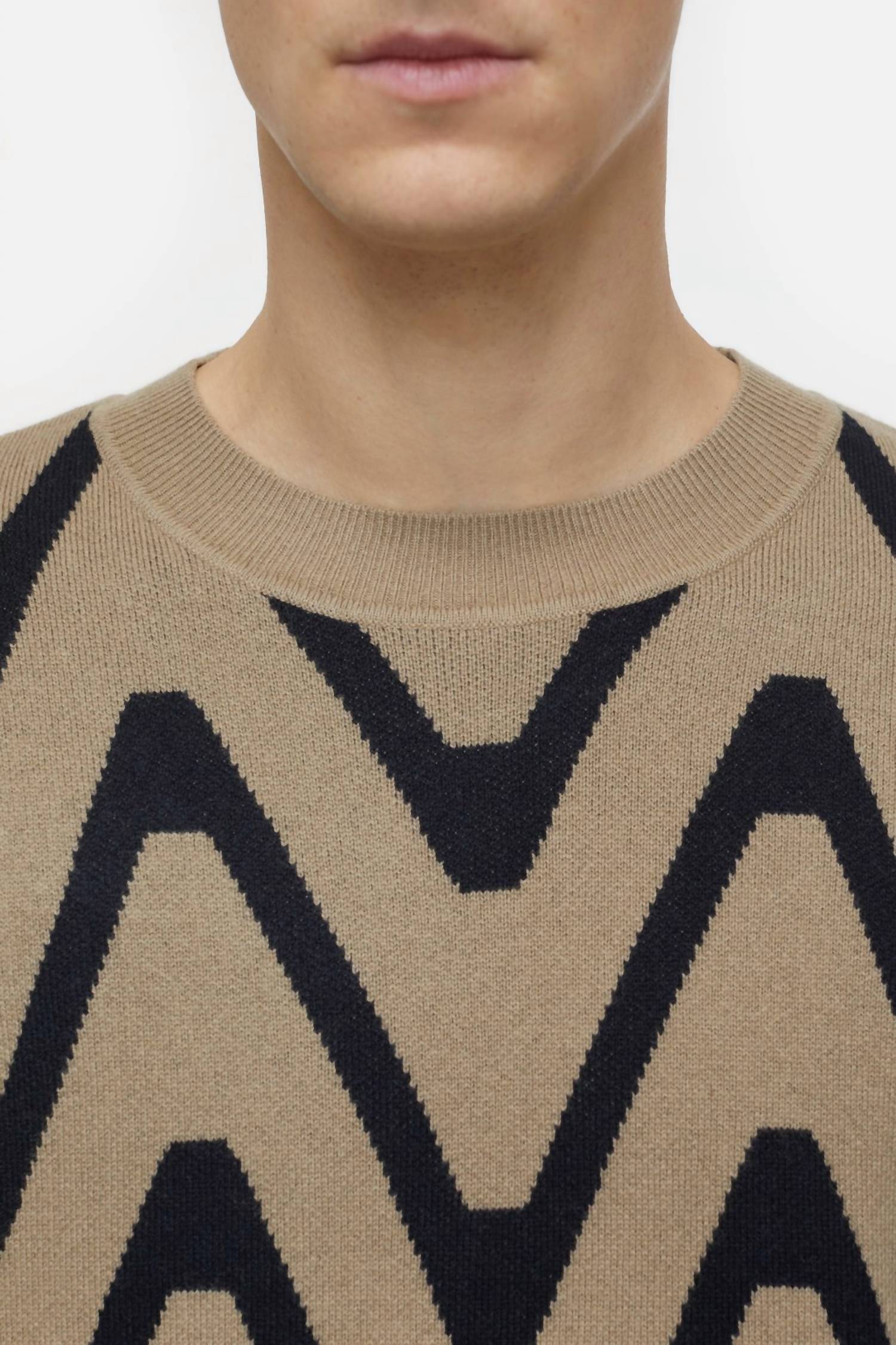 The Cashmere Mix Sweater by CLOSED is an ideal addition for those seeking soft luxury with its refined wool-cashmere blend. This long sleeve, crewneck jumper features a striking pattern in taupe, beige, and black hues, complemented by ribbed trims for a tailored finish. Measuring approximately 72 cm (28.3 inches) in length for a size M, it offers a regular fit and is expertly crafted in China. The pull-on style is easy to wear, and care instructions include hand washing, using a wool program, or dry cleaning.
