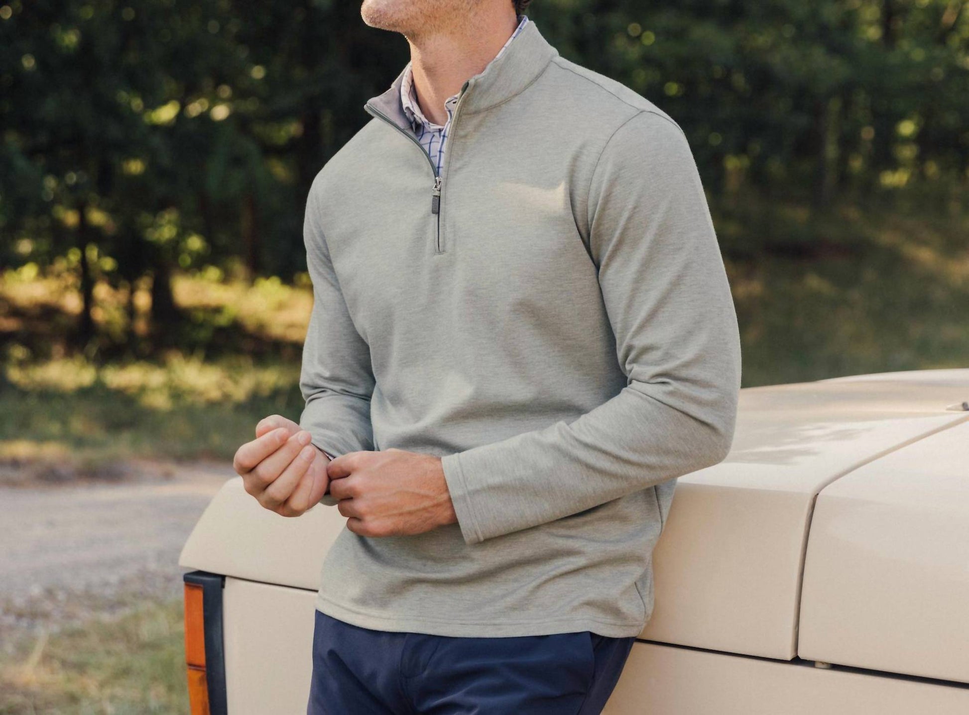 4-way stretch. Moisture-wicking. Wrinkle-resistant. Ultimate stretch recovery. Zip front placket. Regular fit. Fabric Contents: Rayon 60%, Nylon 34%, Spandex 6%